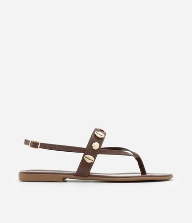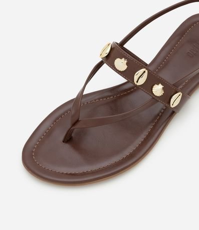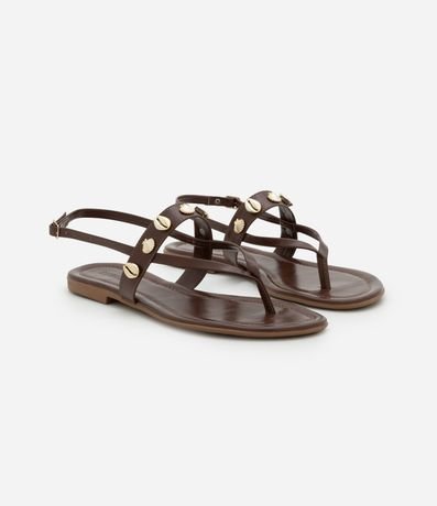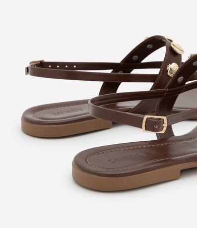 Ref: Sandália feminina no modelo rasteira com bico redondo, tiras finas e tira média central com pingentes do fundo do mar.