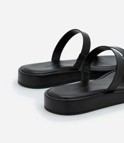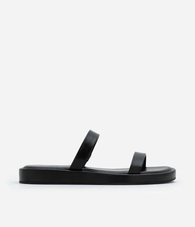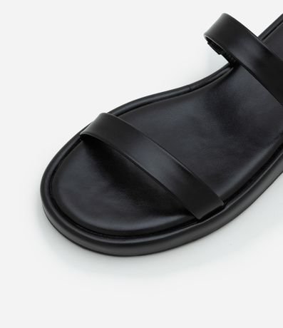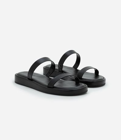 Ref: Sandália feminina confeccionada em material sintético com bico redondo, sola baixa. Peça no modelo rasteira com tiras duplas médias.