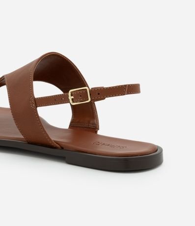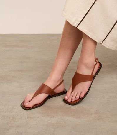 Ref: Sandália rasteirinha confeccionada em couro legítimo, de dedo e com fechamento no calcanhar por tira e fivela.