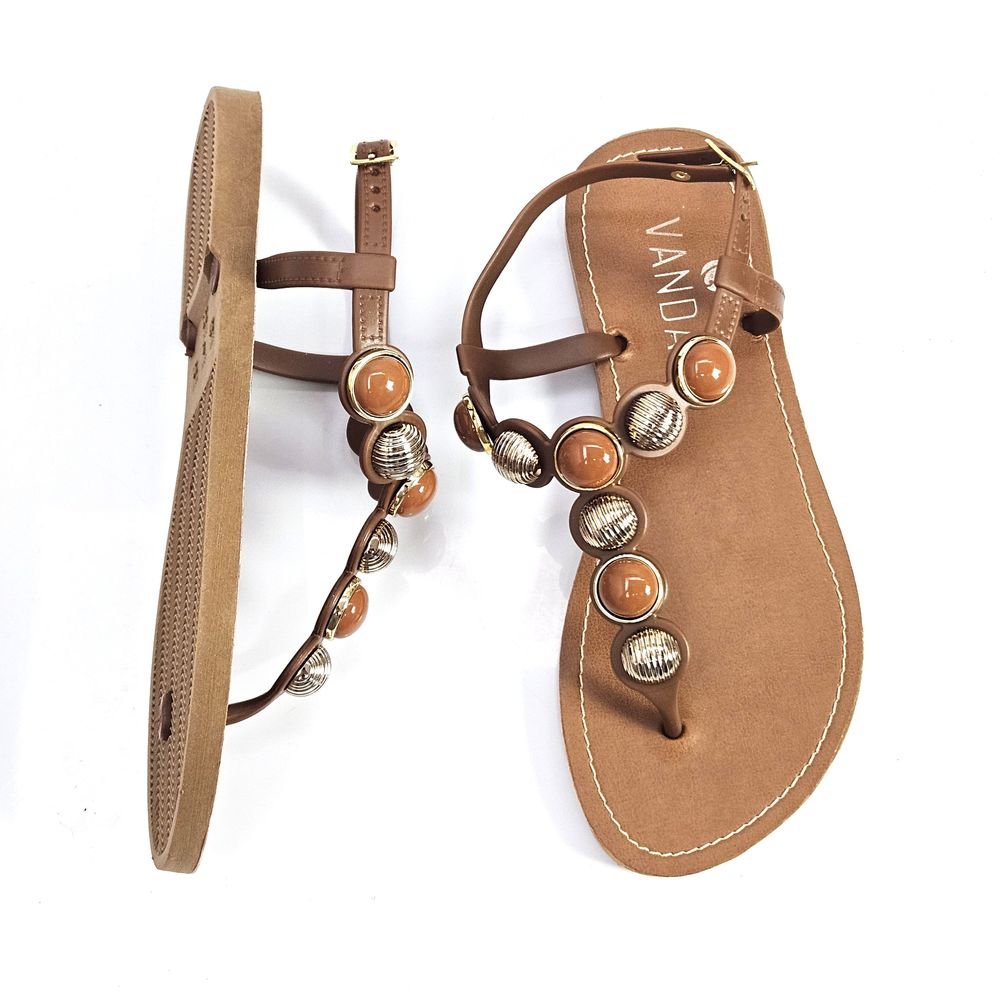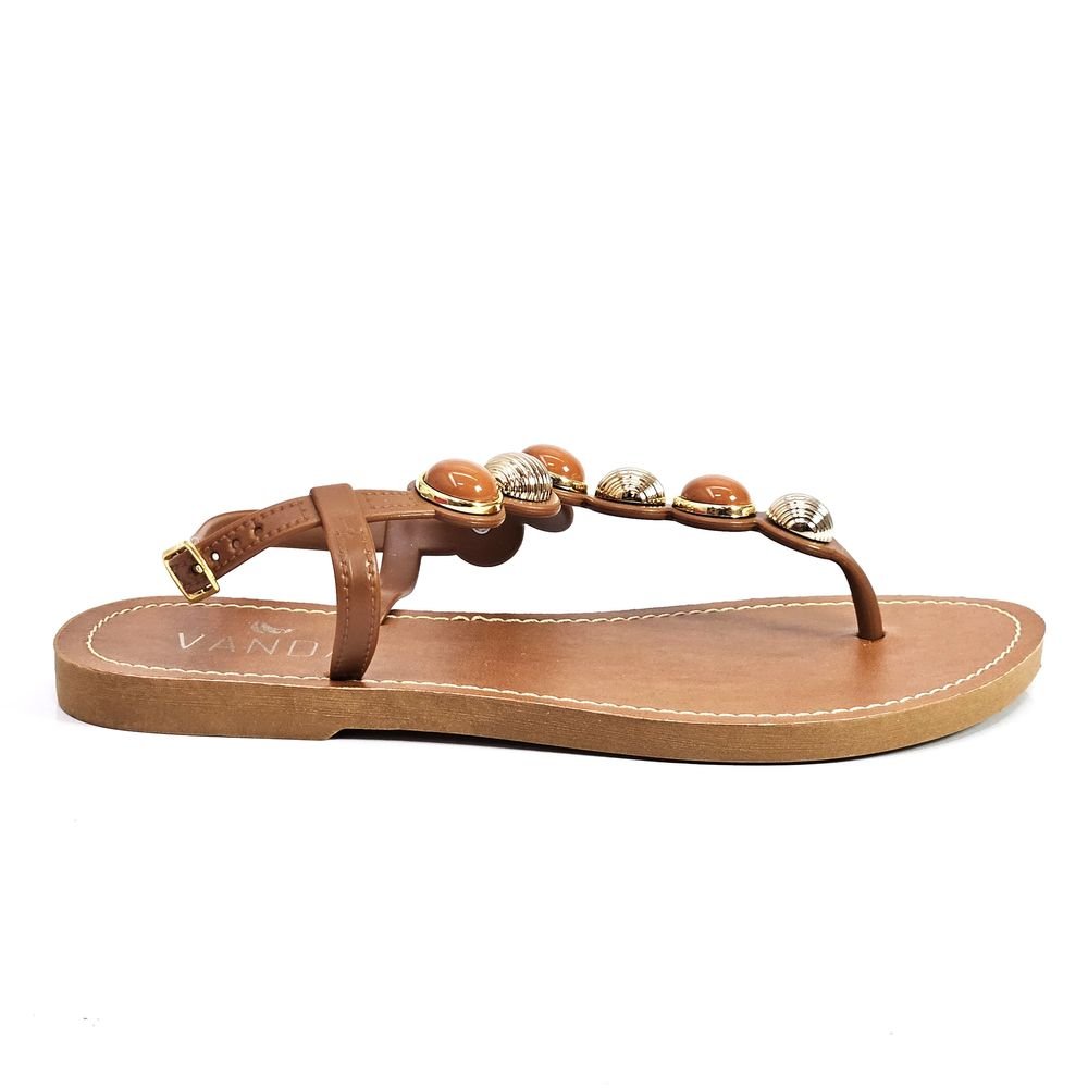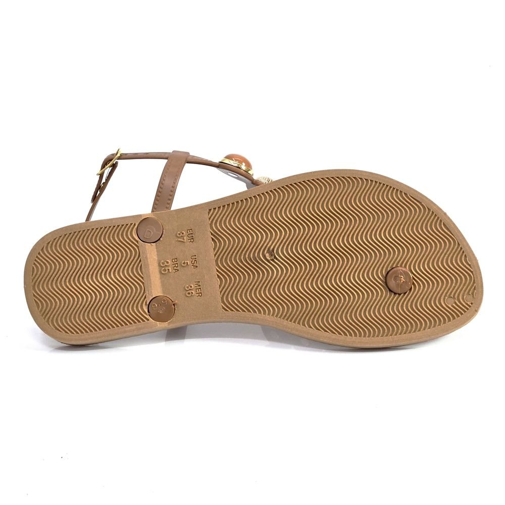 Desfile com elegância e conforto usando a Rasteira Feminina My Club Vanda, um modelo que combina o tom terroso do whisky com detalhes sofisticados para elevar seu visual de verão. Esta sandália tipo "dedo" é o sinônimo da leveza para o dia a dia e ideal para quem busca um toque de cor e brilho sutil. Sua principal atração é a tira central adornada com esferas que mesclam acabamento metálico, simulando metal trabalhado, e pedras que lembram a cor turquesa ou um verde-mar. Confeccionada em material sintético de alta qualidade na cor whisky (caramelo/marrom claro), ela possui fechamento por fivela no tornozelo, garantindo um ajuste perfeito e seguro. A palmilha macia e o solado leve proporcionam um caminhar agradável e descontraído, tornando-a perfeita para passeios, encontros casuais ou qualquer ocasião que exija charme e bem-estar.