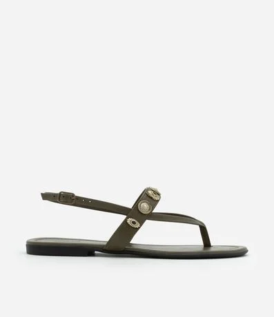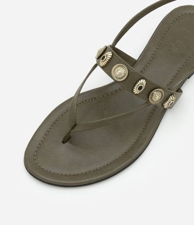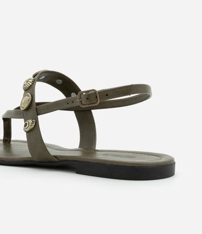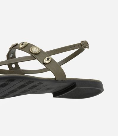 Ref: Sandália estilo boho, modelo rasteirinha, com tira no calcanhar e aviamentos metálicos.