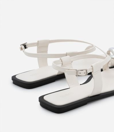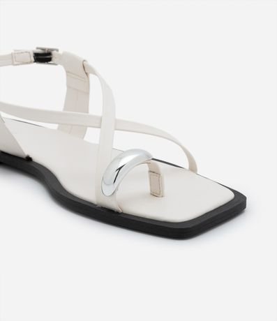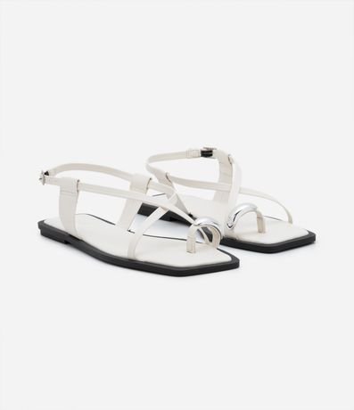 Sandália Rasteira em PU com Dedeira e Aviamento Bold