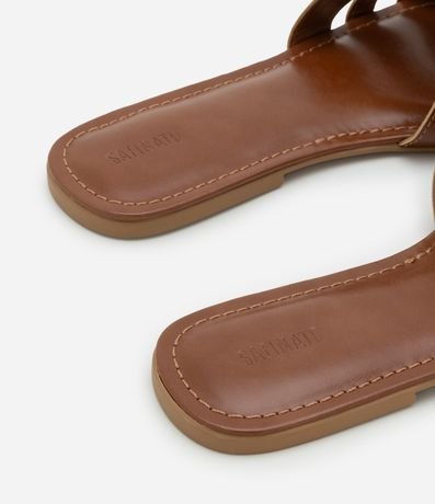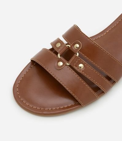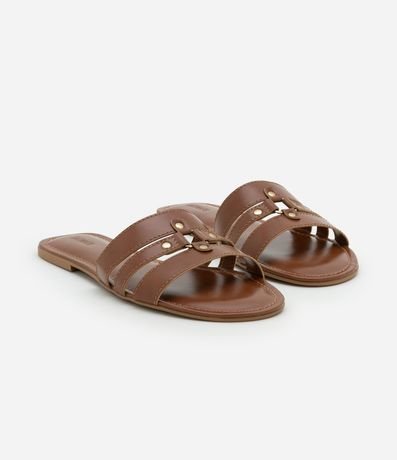 Ref: Sandália feminina modelo rasteira flat mule, com efeite de tachinhas no centro e confeccionada em PU.