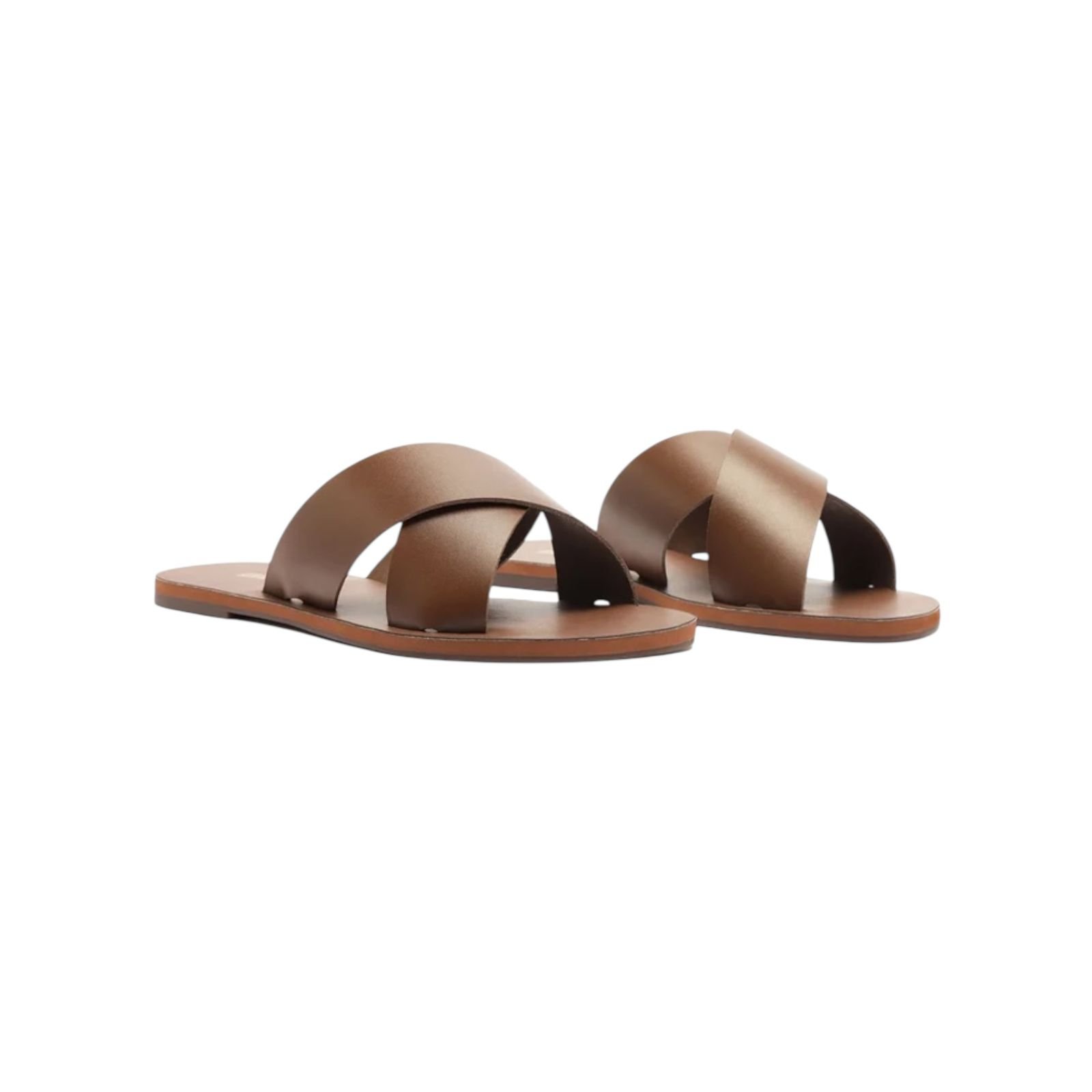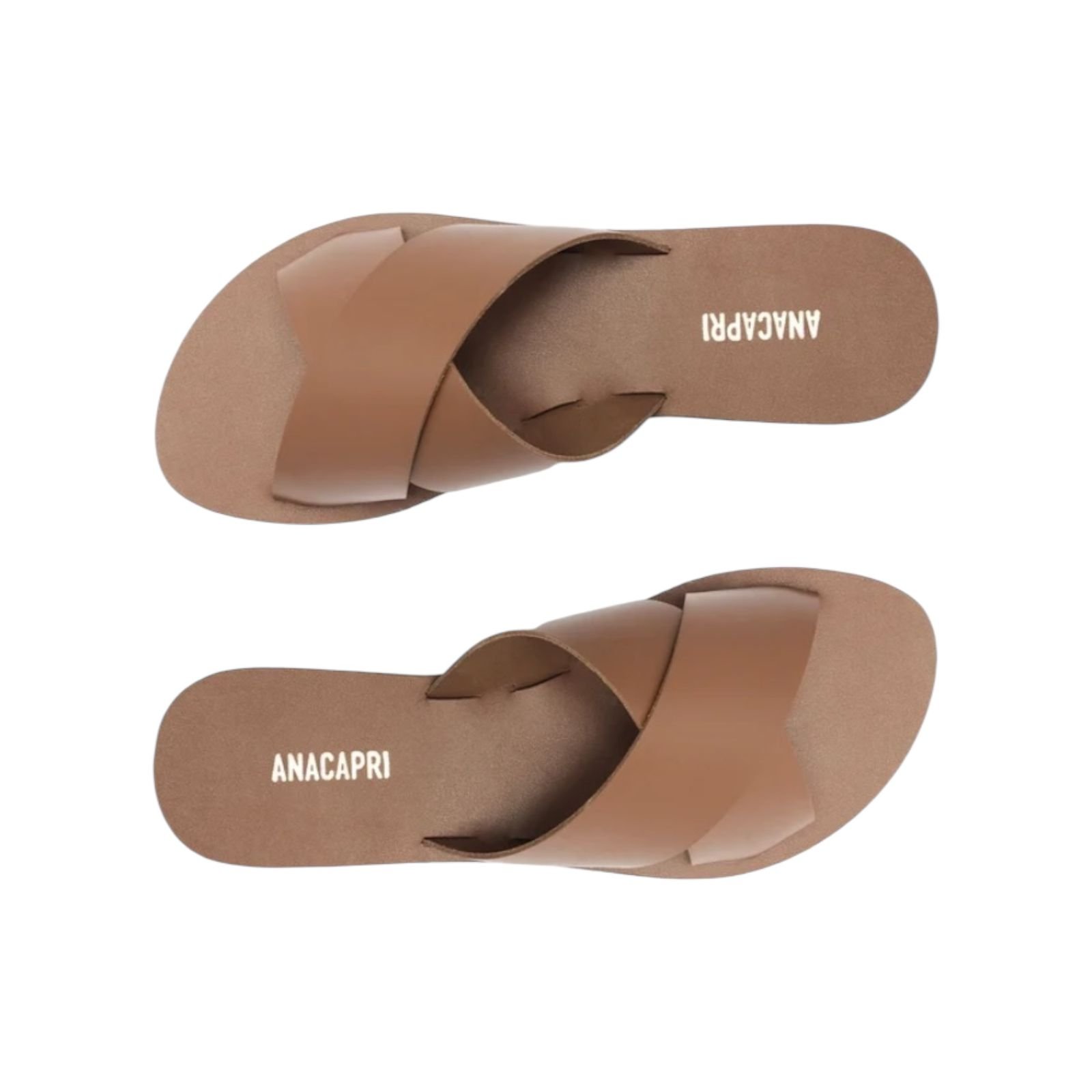 Sandalia Rasteira Feminina Anacapri Couro Tiras Cruzadas Marrom