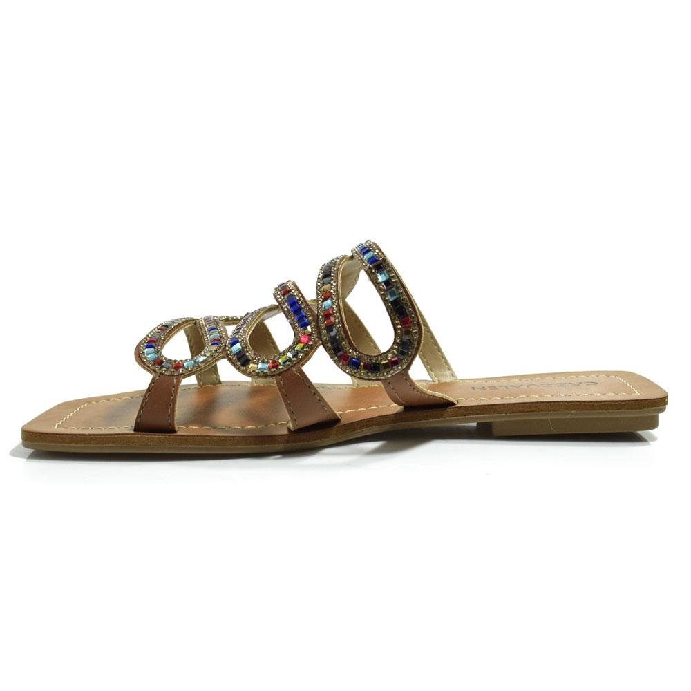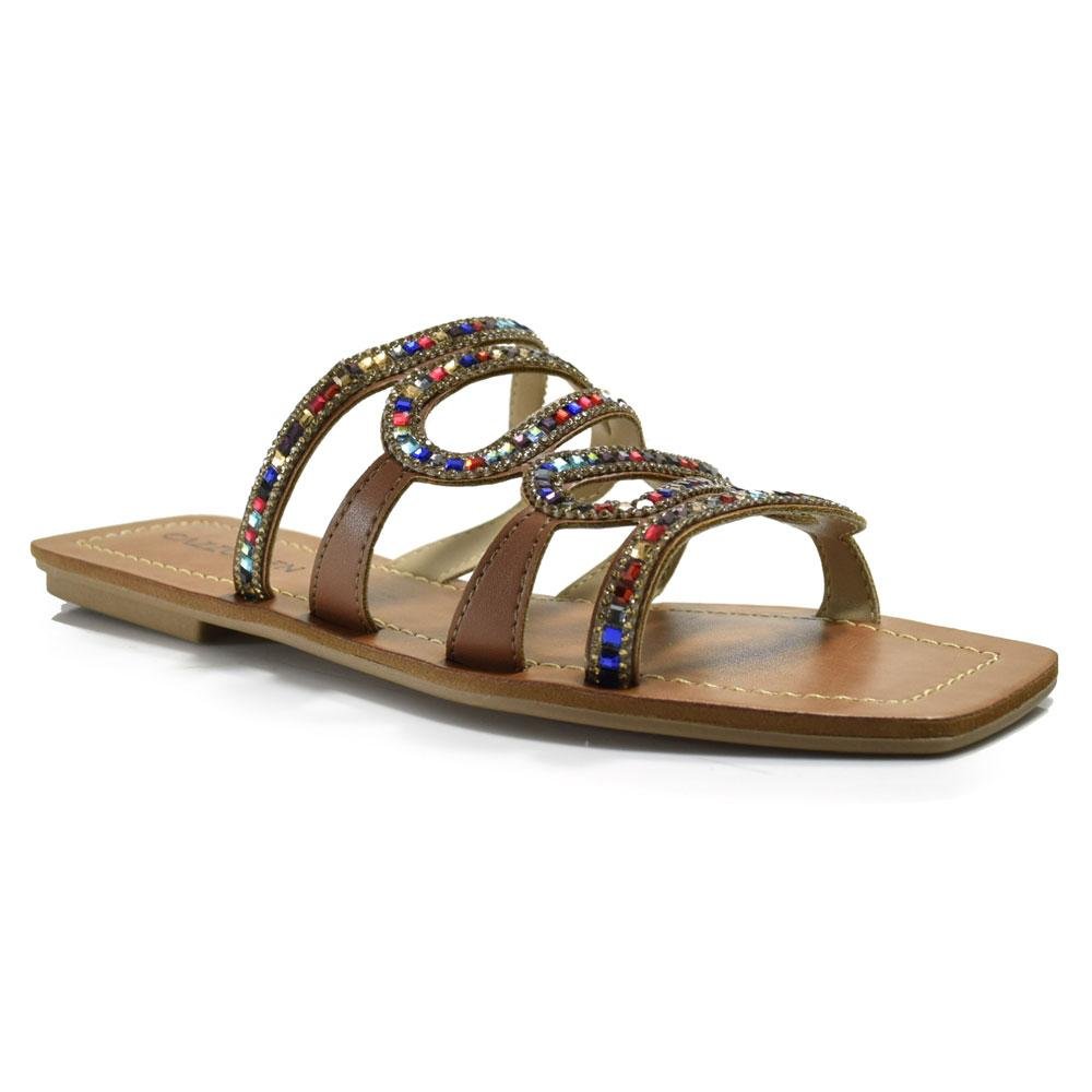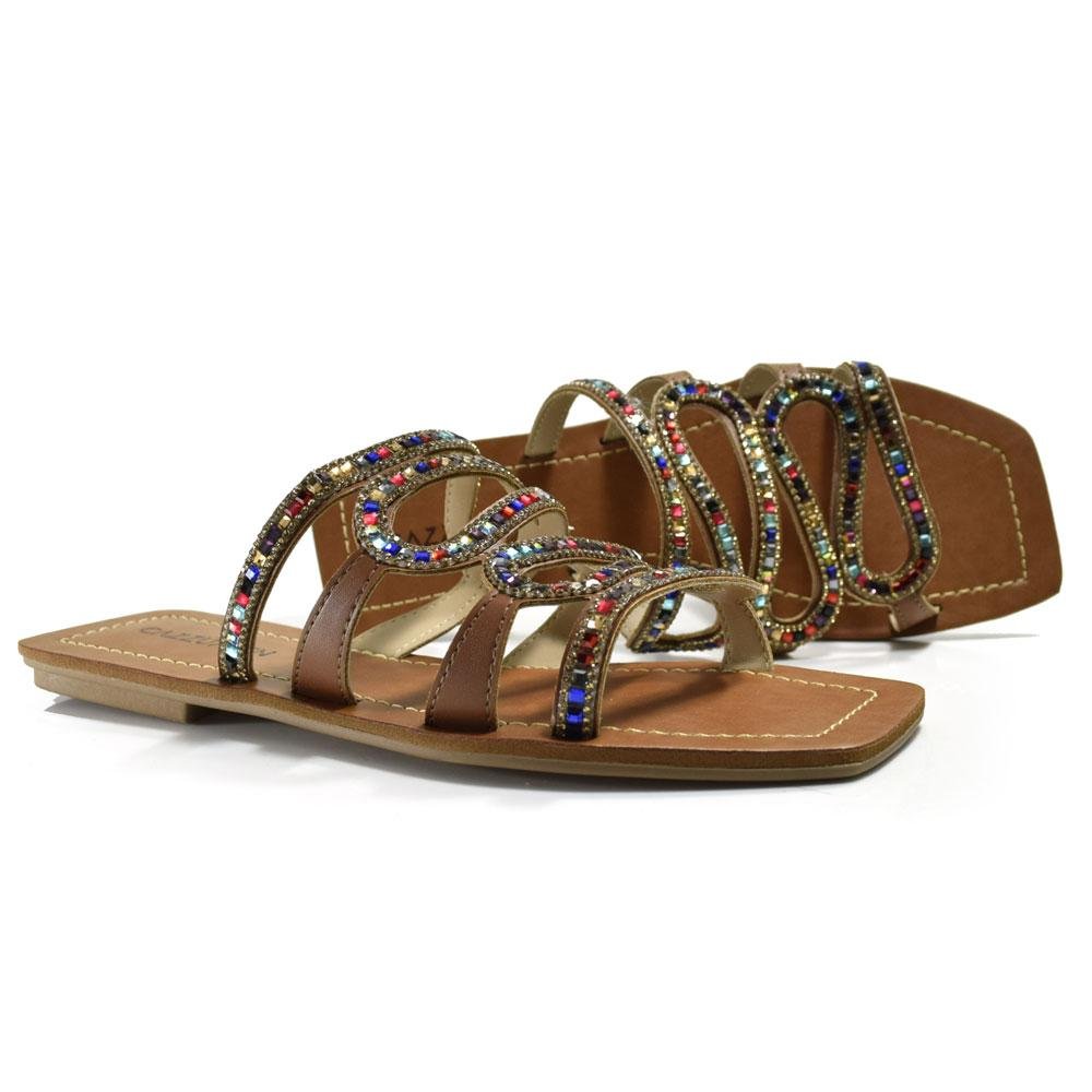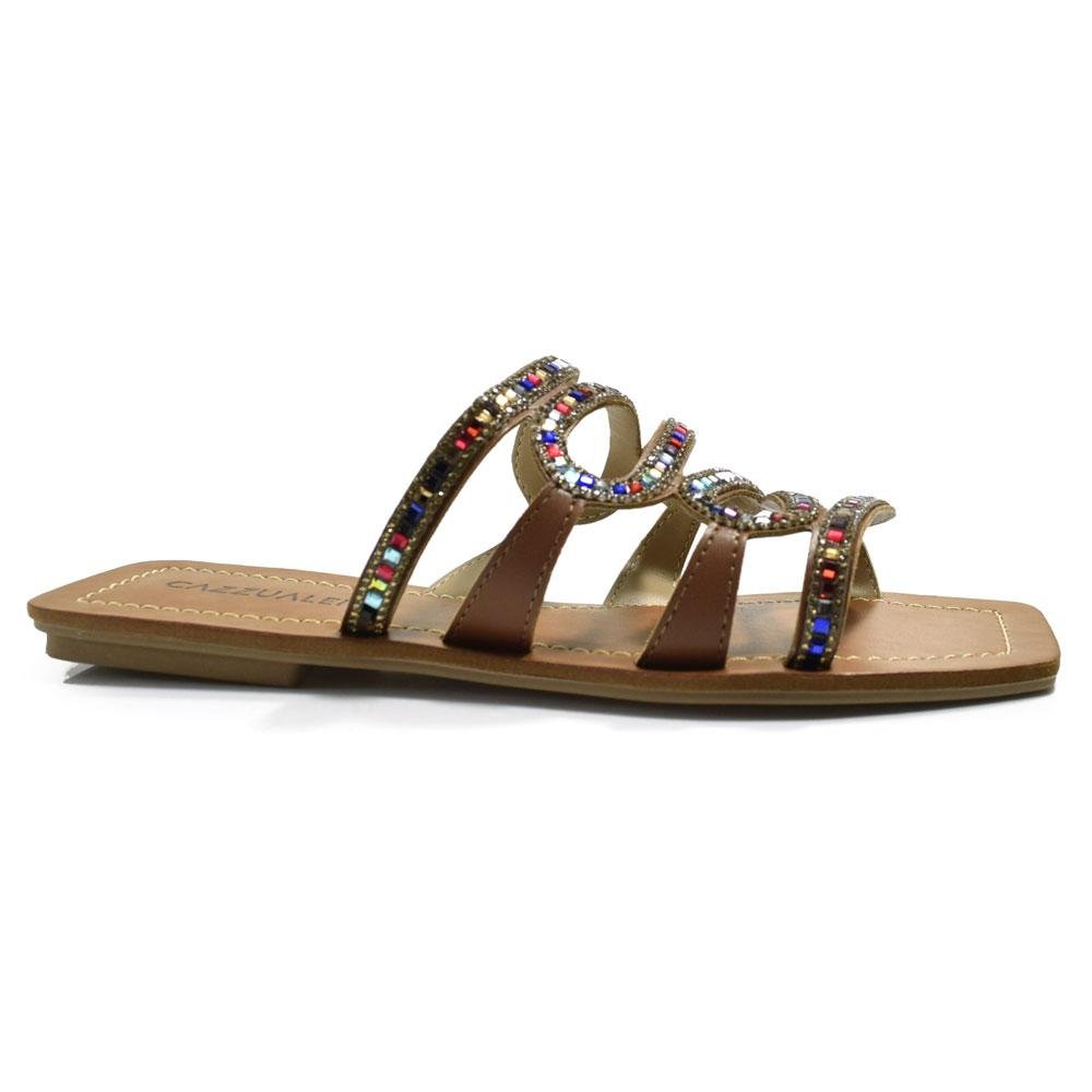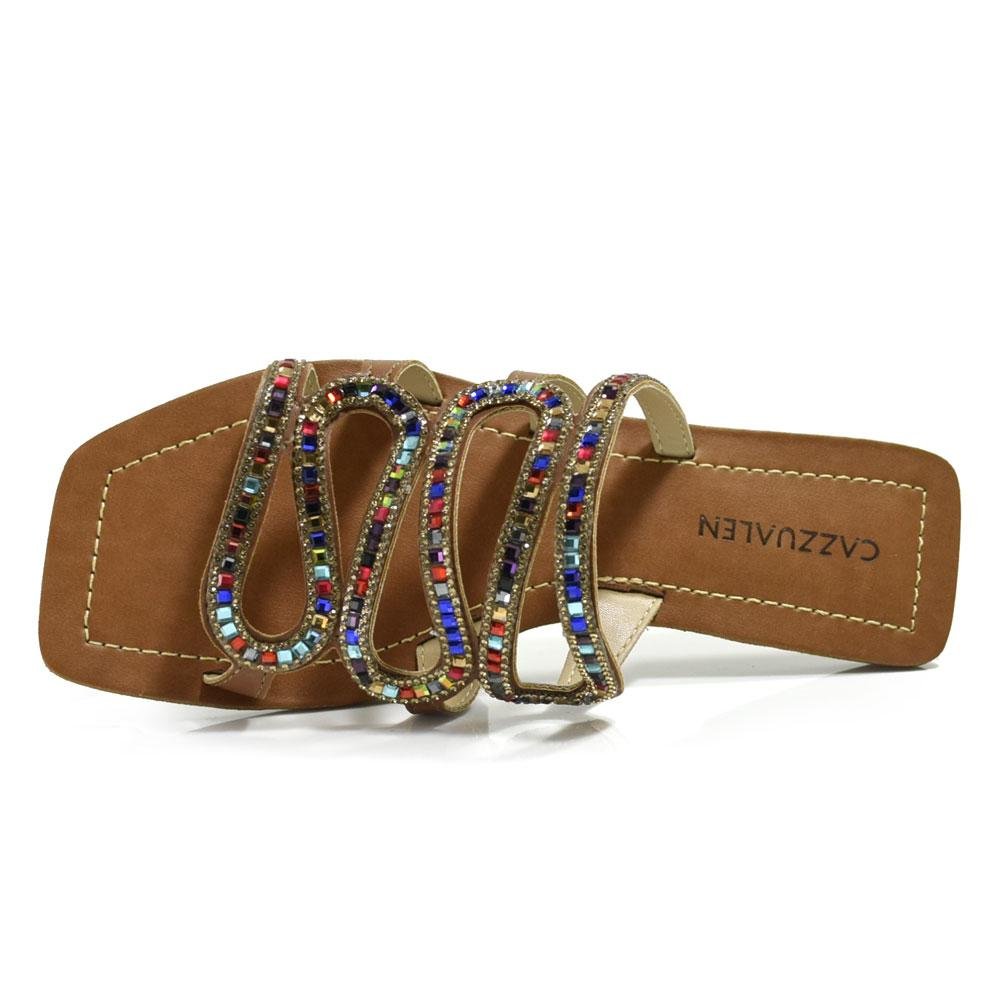 Sandália Rasteira Feminina CazzualenA Sandália Rasteira Feminina Cazzualen entrega tudo no brilho e na sofisticação da Rasteirinha Feminina, item indispensável para compor looks coloridos, modernos e cheios de charme. Seu design exclusivo apresenta tiras sinuosas decoradas com pedrarias multicoloridas nas cores azul, vermelho, dourado e outras tonalidades vibrantes, garantindo um visual marcante e elegante.
