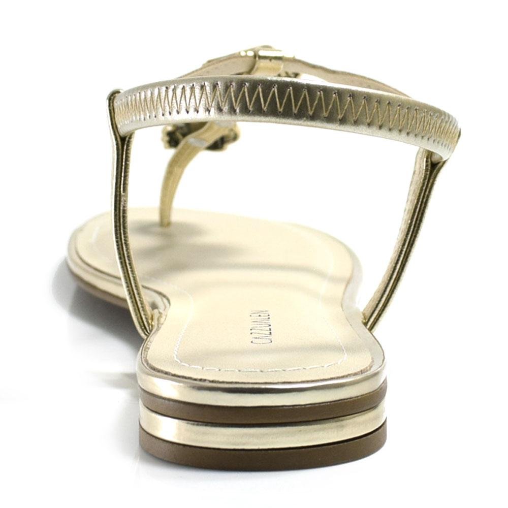 Sandália Rasteira Feminina Cazzualen, confeccionada em material sintético com fácil calce, detalhe sutil em aplicações metalizadas, palmilha em EVA e solado de borracha. Essa sandália rasteira é delicada, moderna e elegante, ideal para looks fresquinhos de arrasar, como passeios casuais, passeios ao ar livre, viagens, idas ao shopping, entre outros. Coleção: Primavera/Verão 2026. Aproveite e compre online. Ref: T1028-541