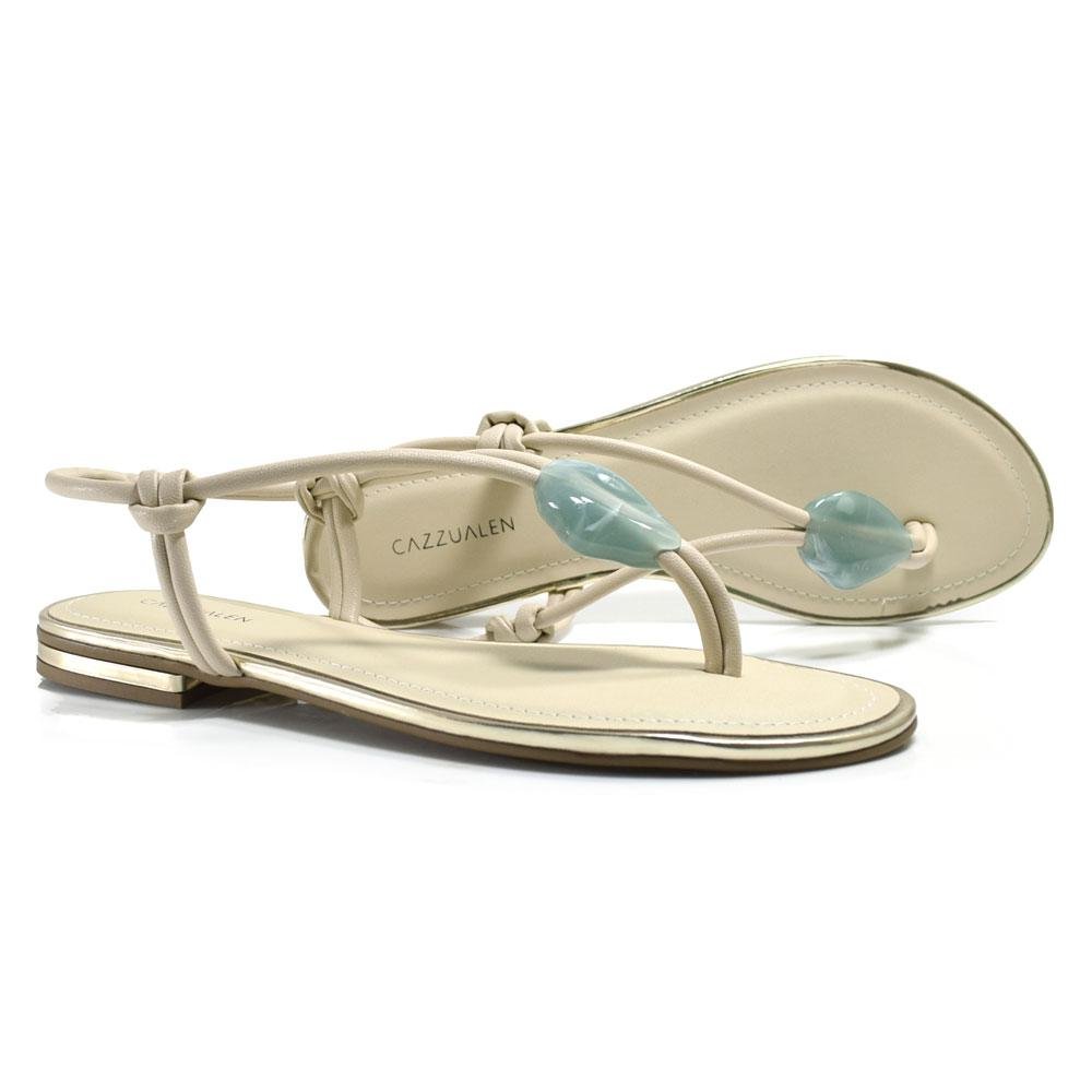 Sandália Rasteira Feminina Cazzualen, confeccionada em material sintético com fácil calce, detalhe sutil em pedraria, palmilha em EVA e solado de borracha. Essa sandália rasteira é delicada, moderna e versátil, ideal para looks fresquinhos de arrasar. Coleção: Primavera/Verão 2026. Aproveite e compre online. Ref: T1028-521