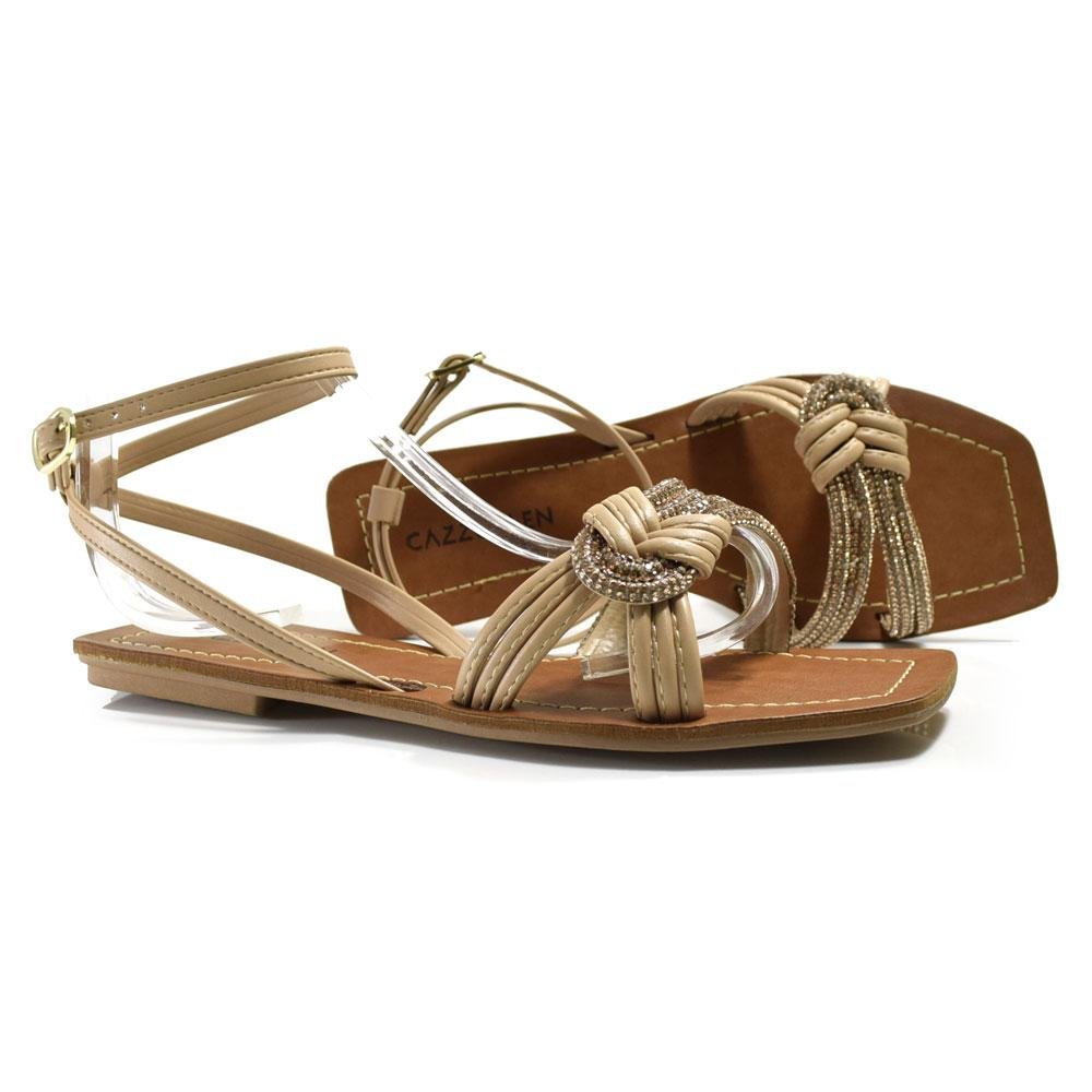 Sandália Rasteira Feminina CazzualenA Sandália Rasteira Feminina Cazzualen combina sofisticação minimalista com um toque de glamour discreto, sendo o calçado perfeito para looks leves e femininos. É versátil e ideal para alongar a silhueta.