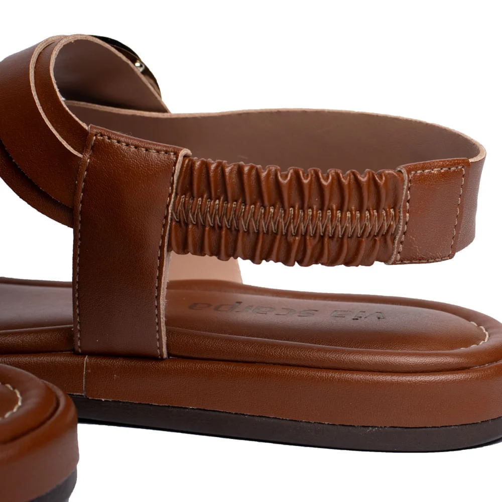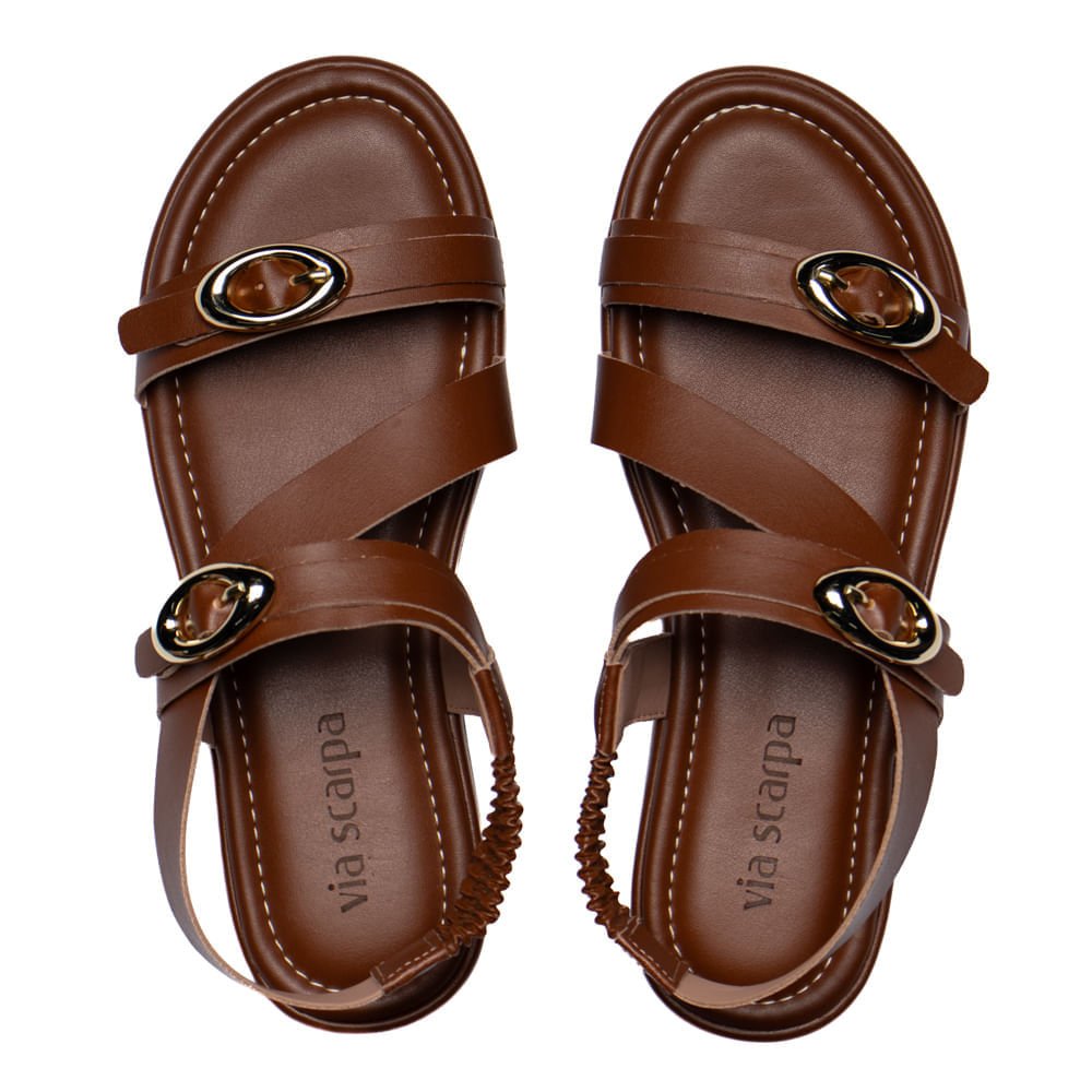 A Sandália Rasteira Feminina Via Scarpa Fivelas Douradas Marrom é a escolha certa para quem busca unir conforto, beleza e estilo em um único calçado.