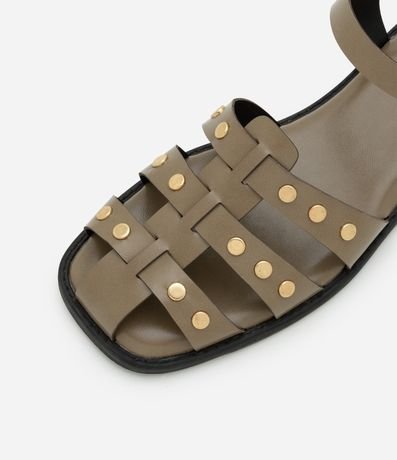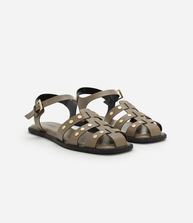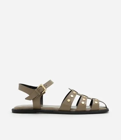 Sandália Rasteira Fisherman em PU com Tachas de Metal