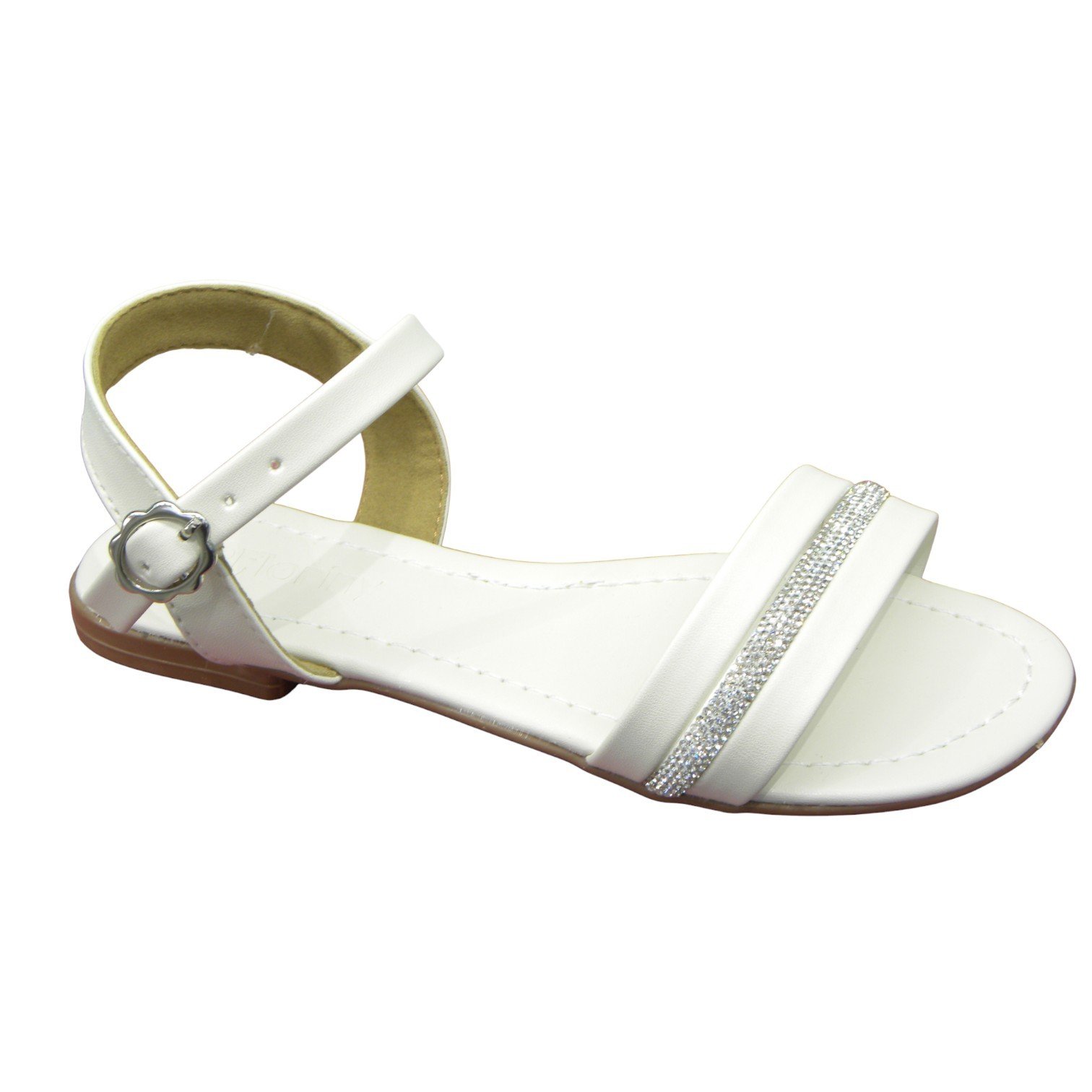 Sandália Rasteira Infantil Menina Com Brilho Fivela Lateral