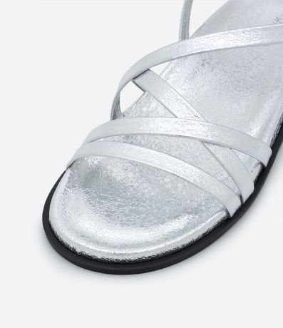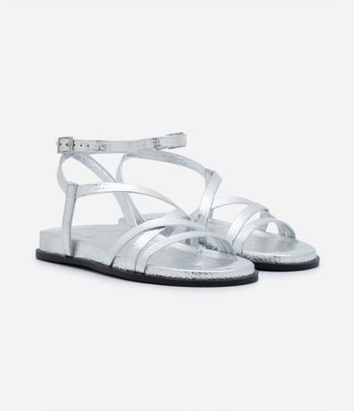 Sandália Rasteira Metalizada com Multi Tiras Cruzadas