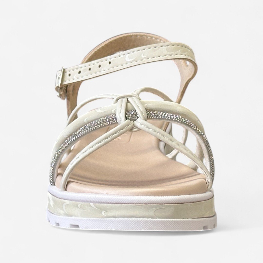 Ref: Estilo do produto: sandália rasteira feminina infantil com tiras finas, delicadas e com detalhe em strass que traz brilho e charme para o visual.