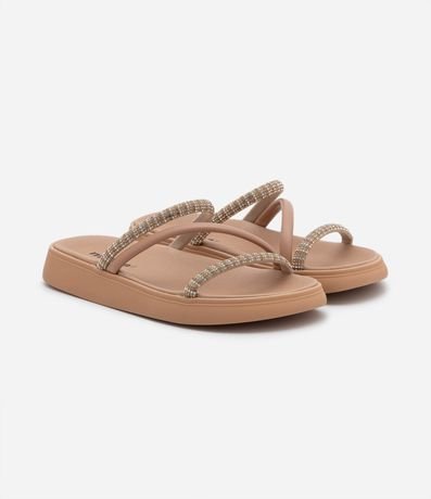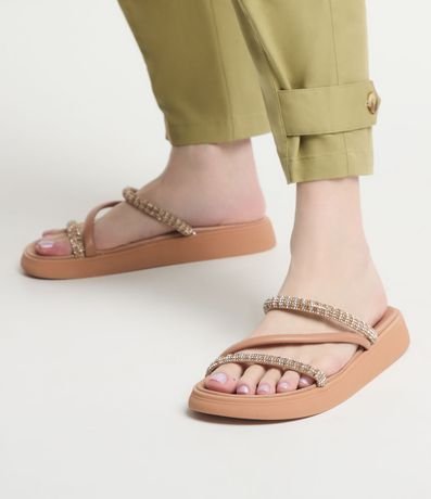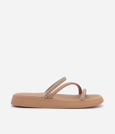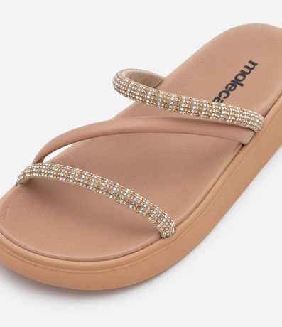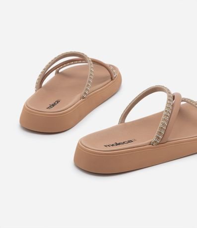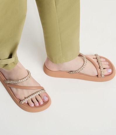 Ref: Rasteirinha feminina em pu, multi tiras com brilhos aplicados e solado diferenciado.