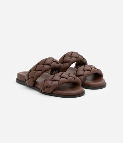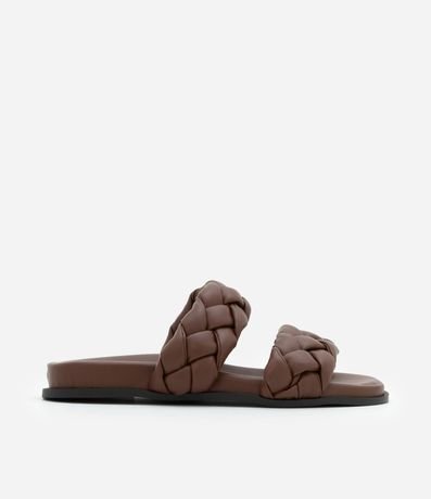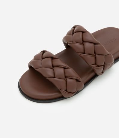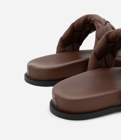 Ref: Sandália feminina rasteira com bico redondo, e com tiras grossas puffer.
