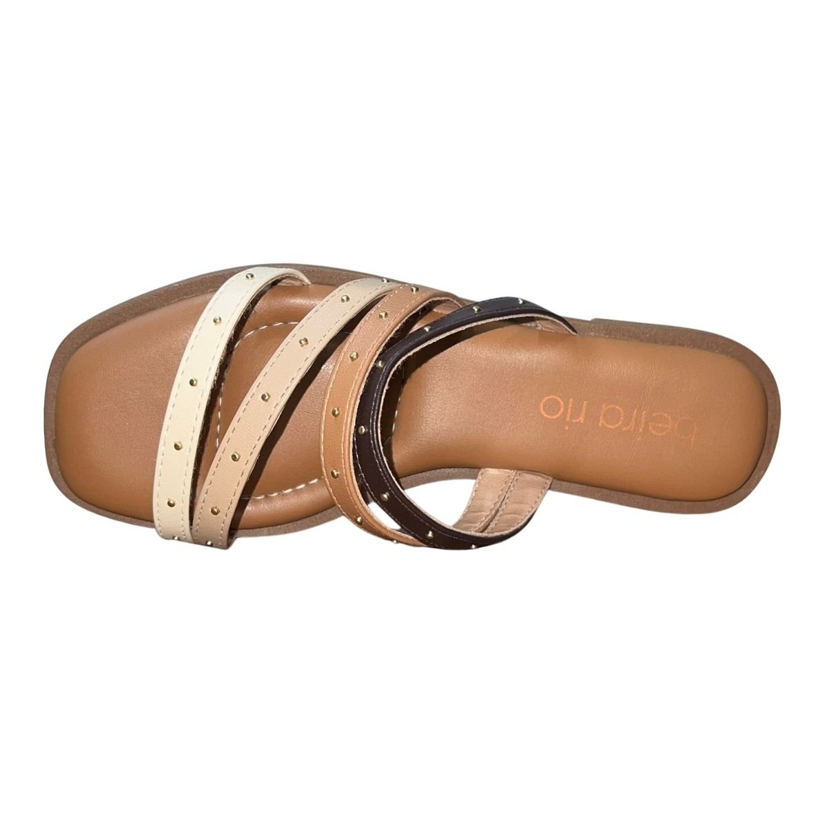 Sandália Rasteira Slide de Tiras com Pedrarias Feminino Beira Rio 8550.102 Marrom