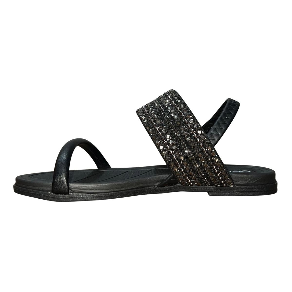 • Tira larga com aplicação de pedrarias que traz sofisticação