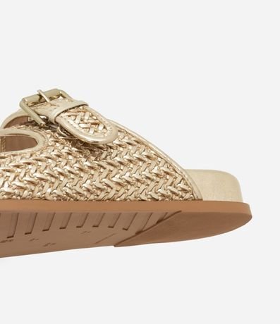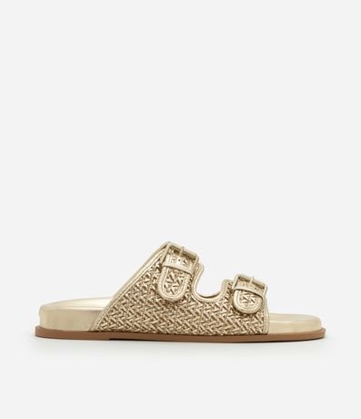 Ref: Sandália feminina rasteira sport com bico redondo, tiras largas com fivelas laterais e textura.