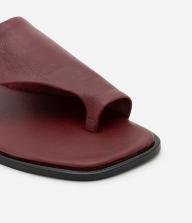 Ref: Rasteirinha feminina em couro, modelo mule, bico quadrado, tira larga no cabedal e detalhe de dedeira.