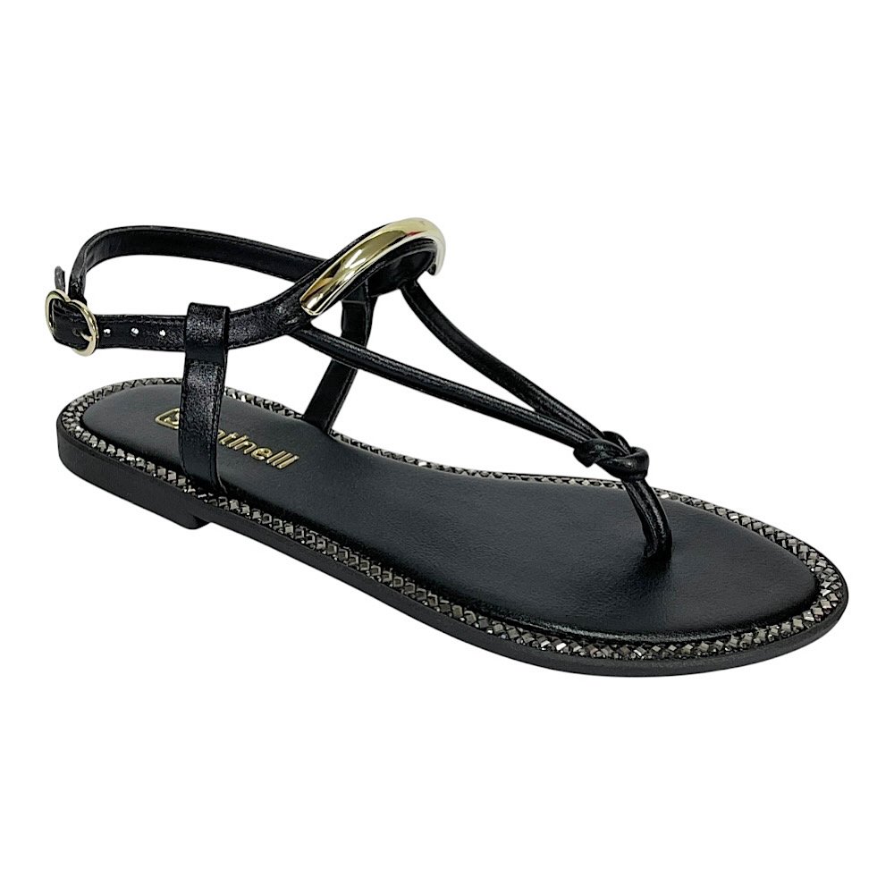 Sandália Santinelli Rasteira Strass 1618-003 Preto