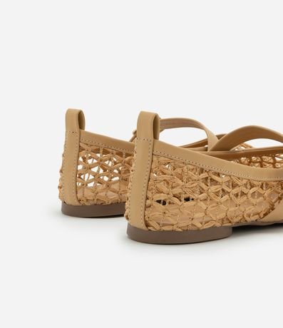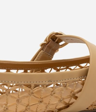 Sandália Sapatilha com Efeito Ráfia com Tira Grossa e Fivela