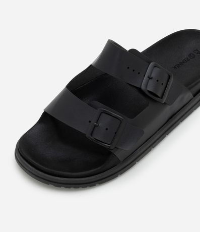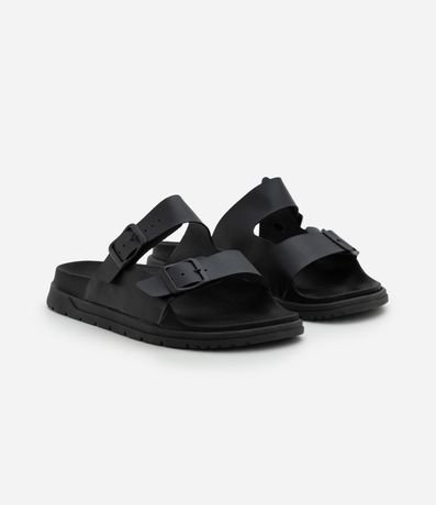 Ref: Sandália masculina confeccionada em material sintético com tiras em napa e fivelas ajustáveis em metal, garantindo conforto e estilo para o dia a dia. Design moderno com palmilha anatômica e solado robusto.