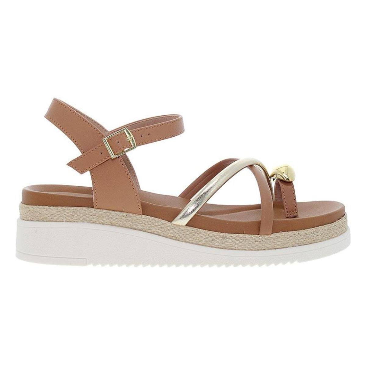 Sandália Tamanco Casual Feminino Flatform Beira Rio 8575.103 Marrom/Dourado