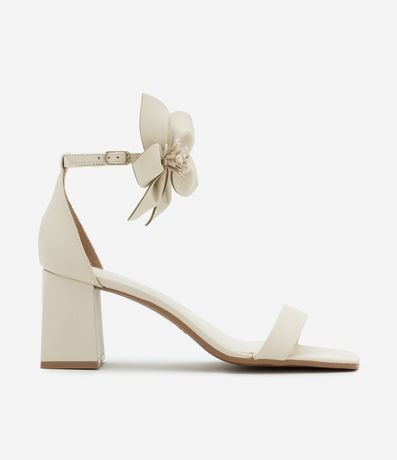 Sandália Tiras com Salto Bloco Texturizado com Flor na Tornozeleira