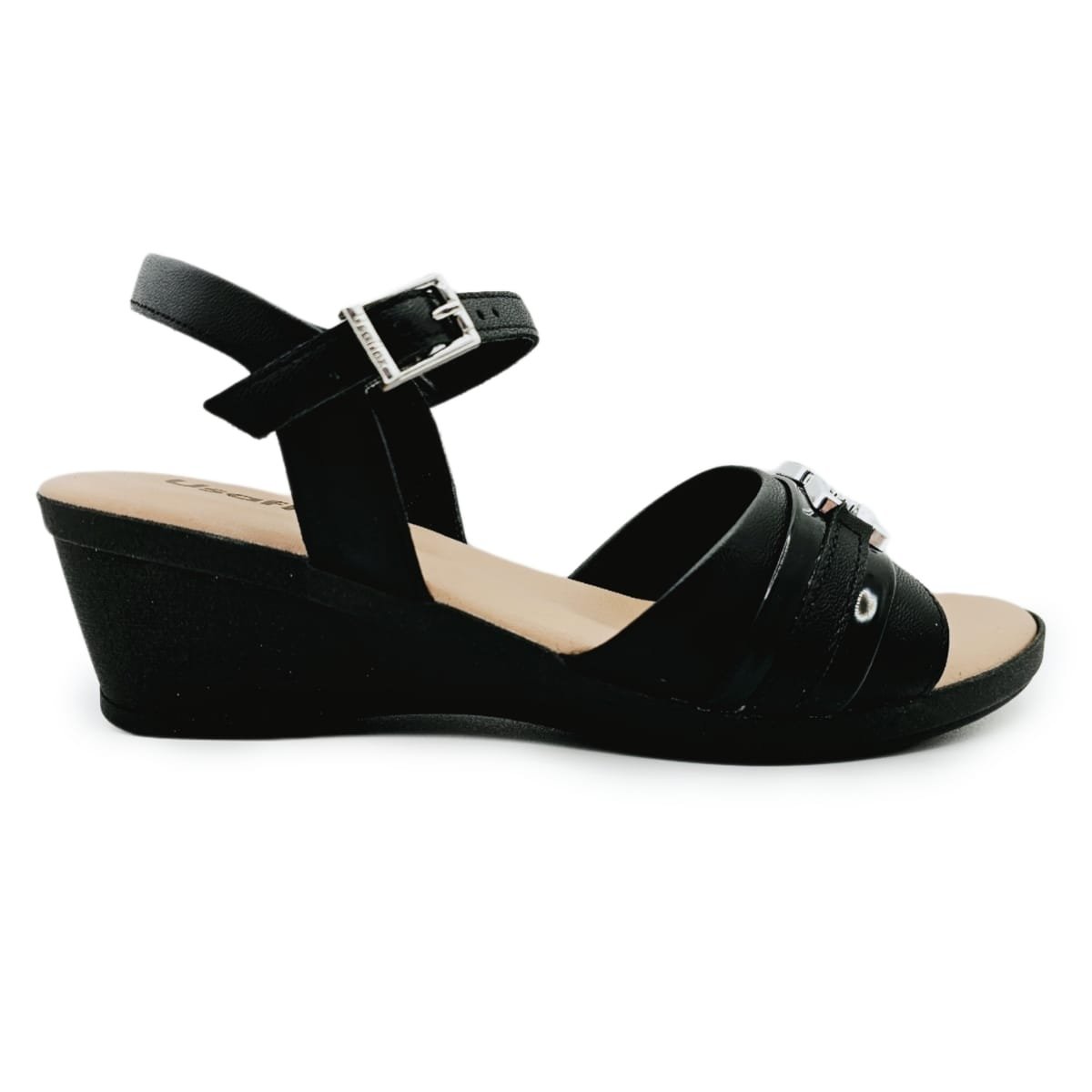 Ref: Descubra Conforto e Estilo com a Sandália Usaflex Plataforma em Couro com Enfeite Metálico