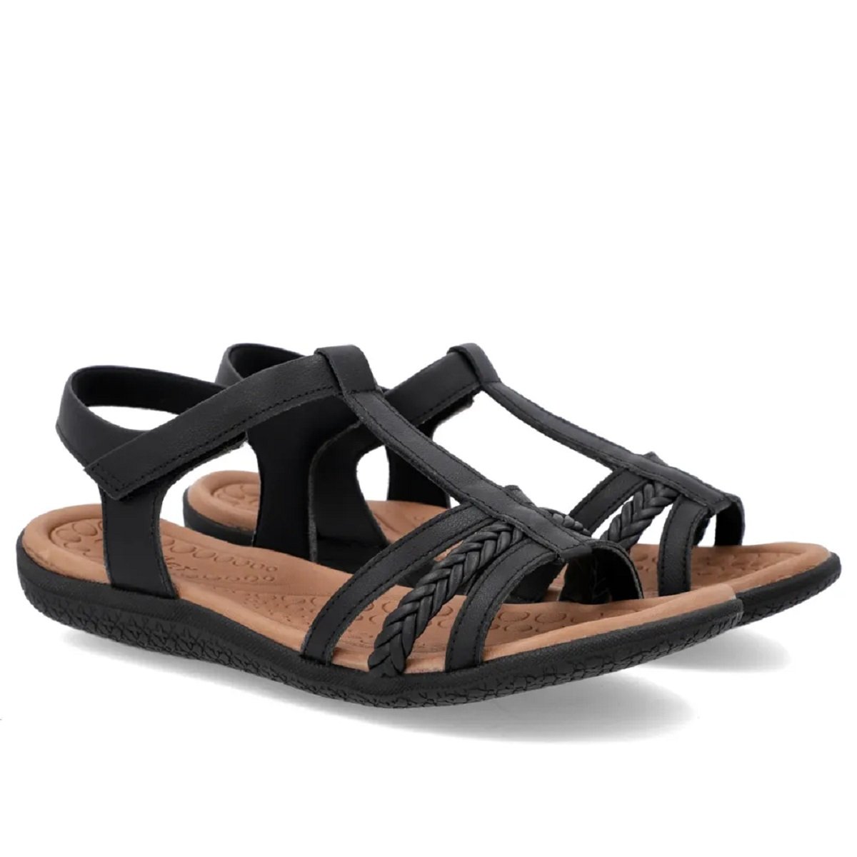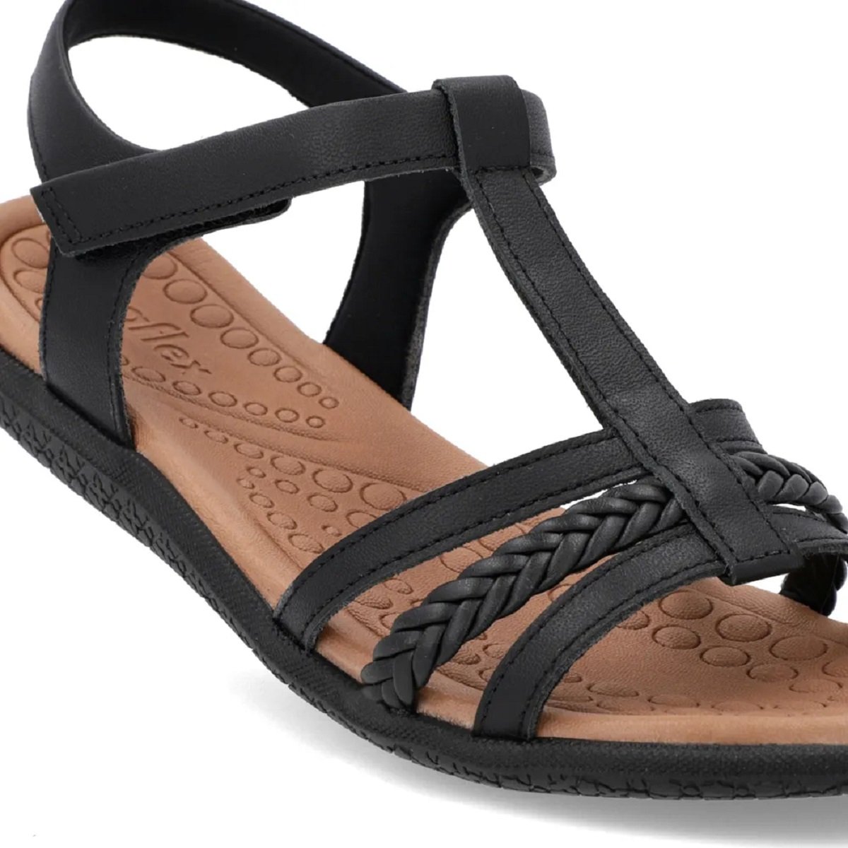 Cabedal em couro napa valise preto com detalhe em tranças, que garante durabilidade e sofisticação.