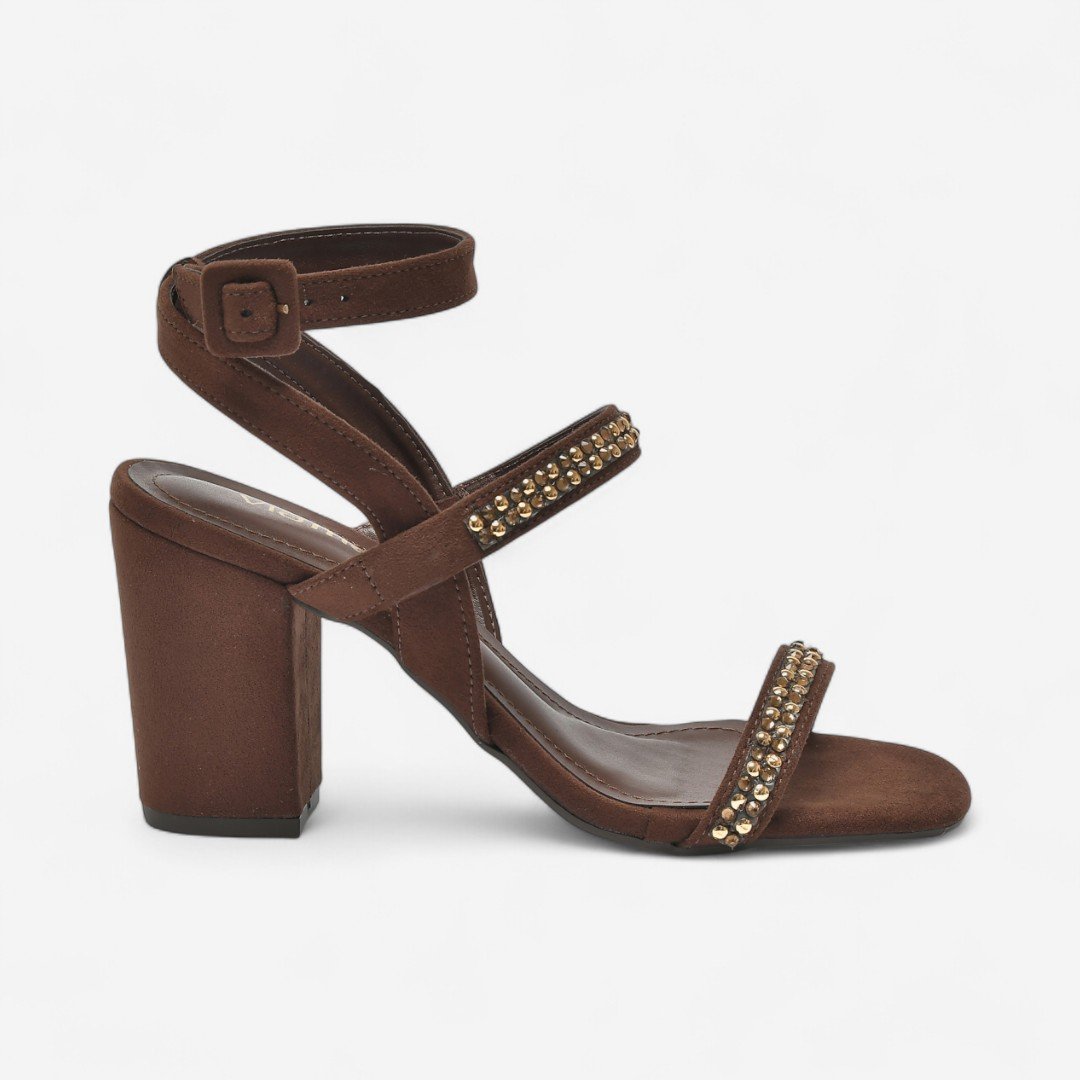 Ref: O modelo conta com calcanhar aberto e tira com fechamento em fivela que envolve o tornozelo, garantindo ajuste firme, segurança ao caminhar e um charme extra ao visual. O cabedal macio proporciona bem-estar durante o uso, permitindo que a sandália acompanhe desde compromissos casuais até produções mais sofisticadas.