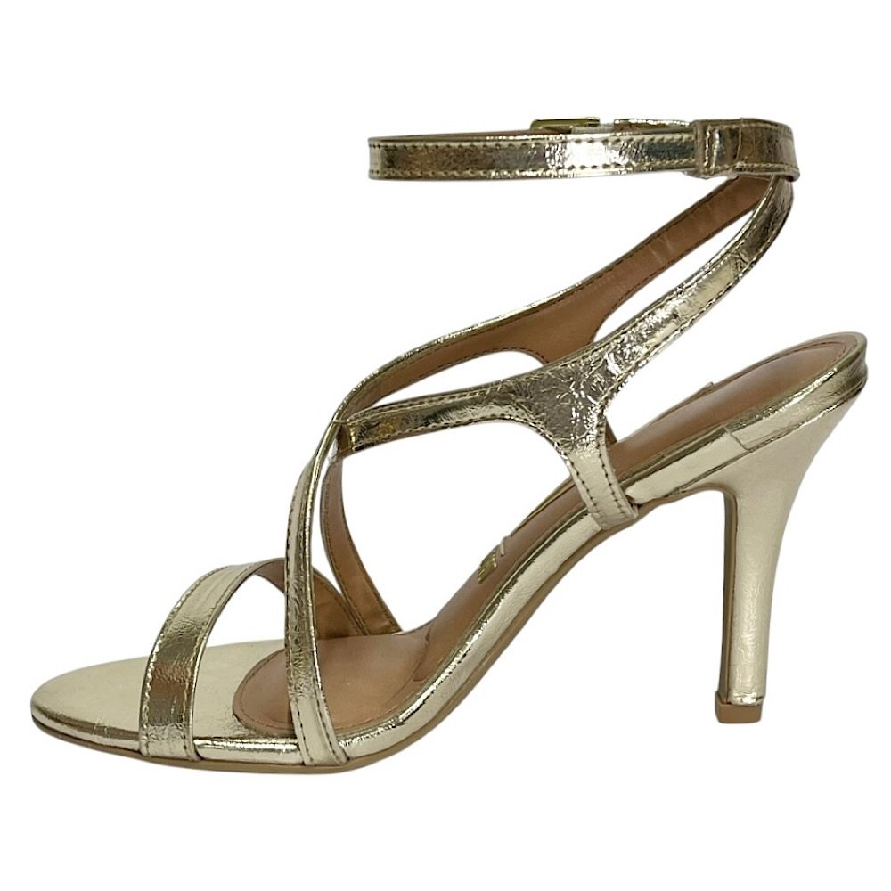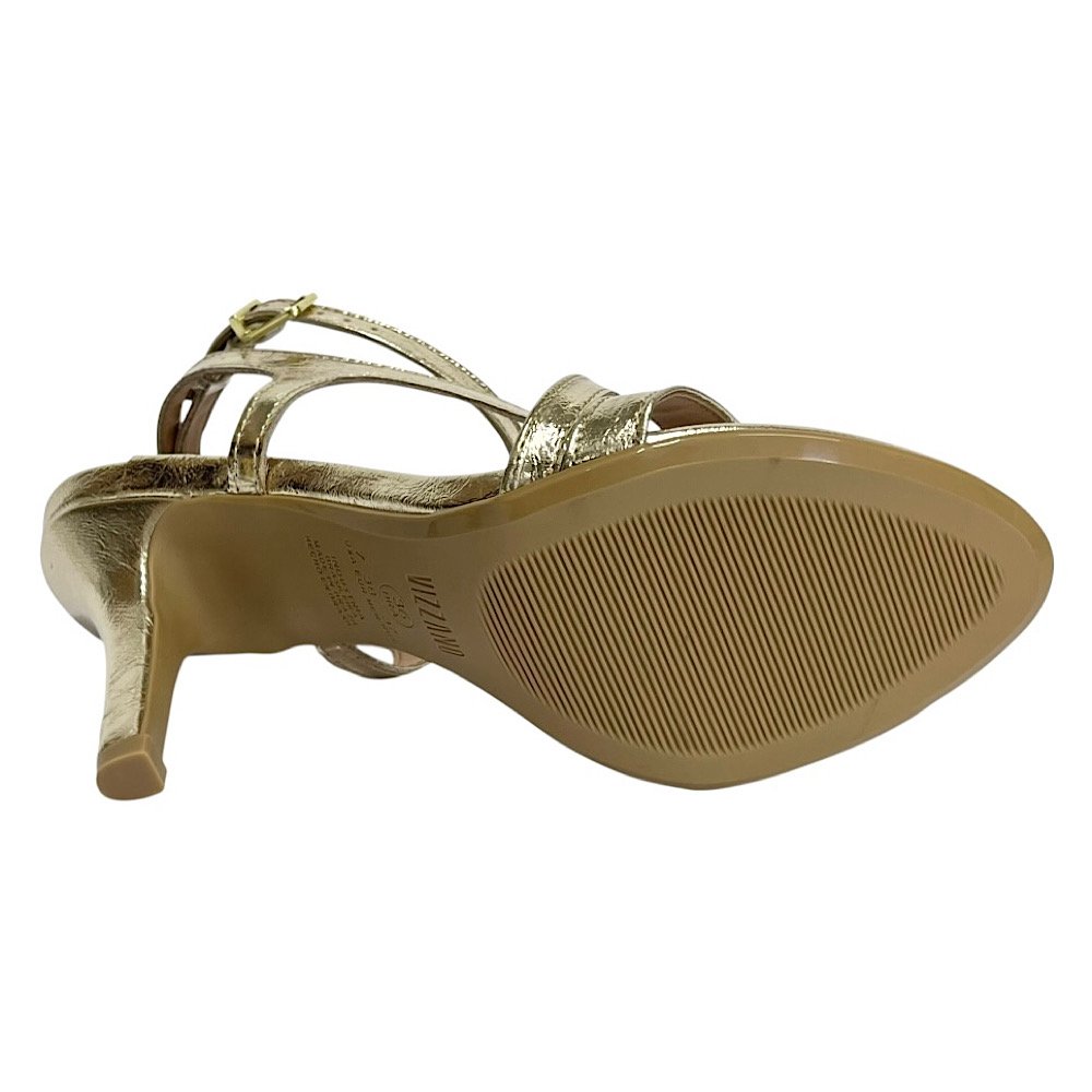 Ref: A Sandália Vizzano Dourada é sinônimo de glamour e sofisticação em cada detalhe. Seu design moderno com tiras delicadas em napa metalizado Milano envolve o pé de forma elegante, criando um visual marcante e cheio de atitude. O salto fino de 9,0 centímetros confere imponência e alonga a silhueta, tornando este modelo perfeito para eventos especiais, festas e produções que pedem um toque de luxo.