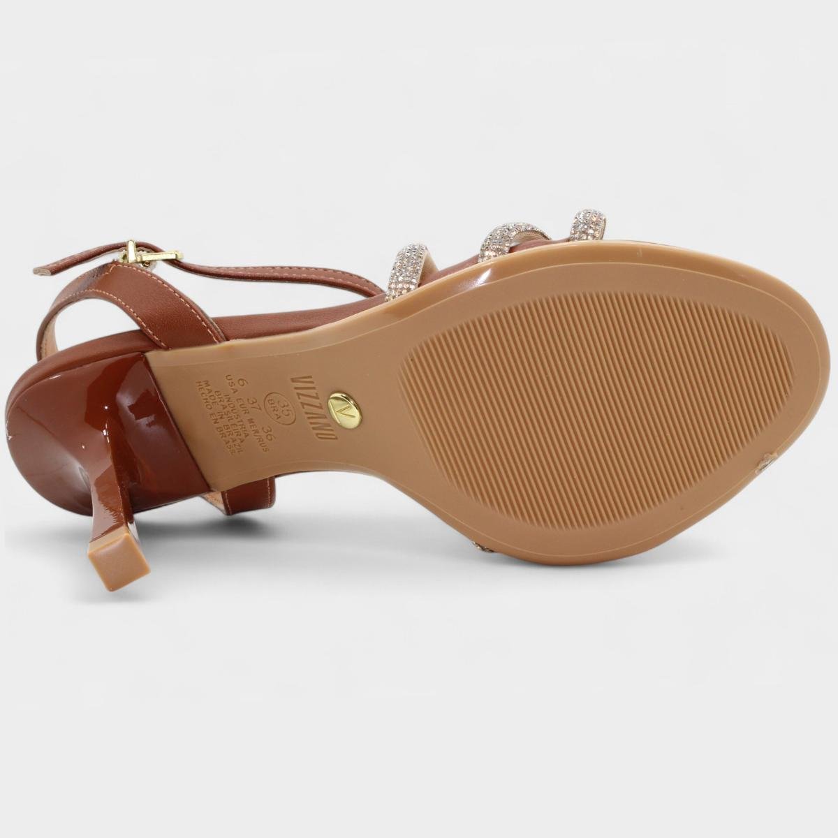 Sandália Vizzano Strass Salto Médio Feminina - Marrom