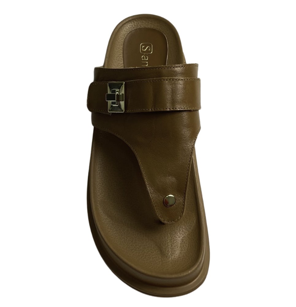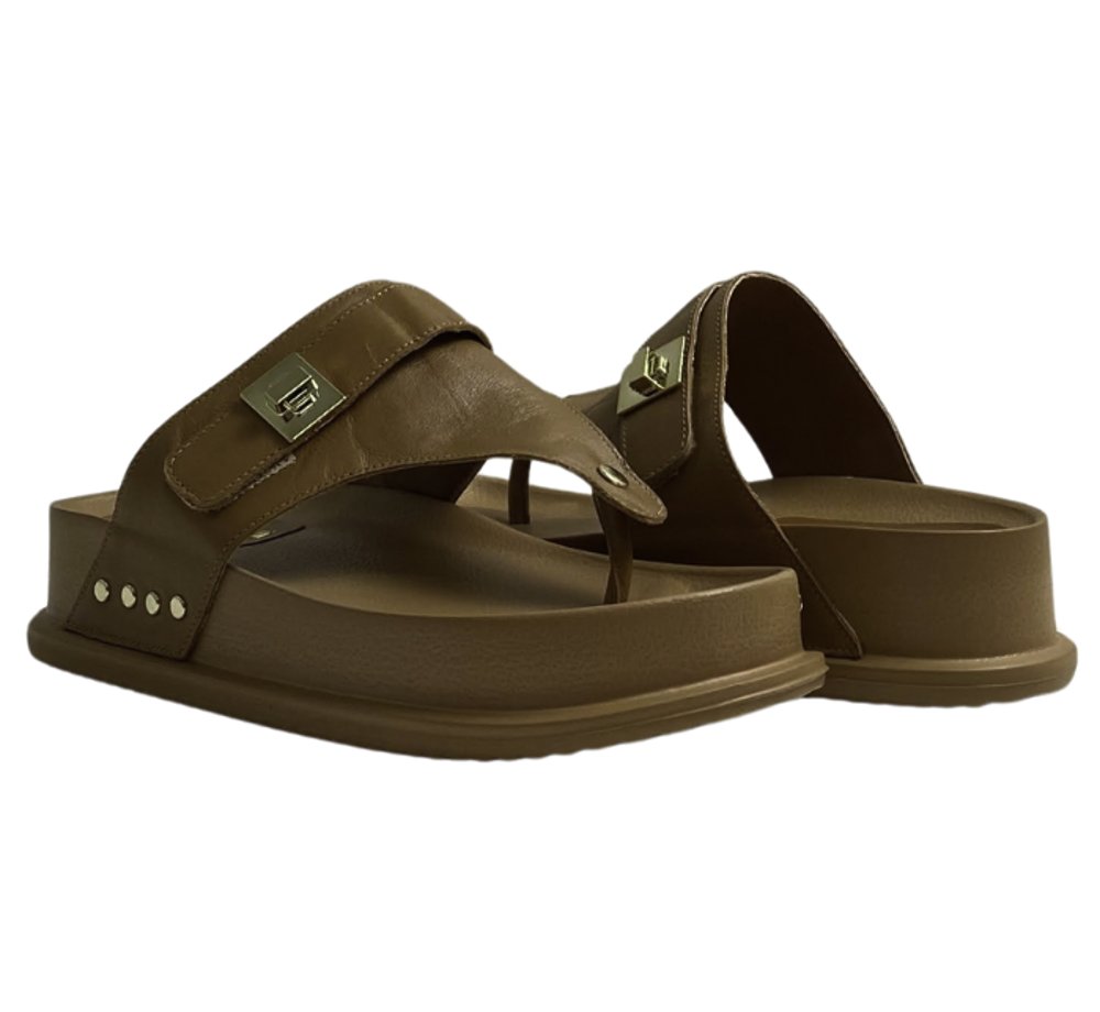 Ref: Tamanco Santinelli com cabedal em couro e detalhe dourado que adiciona um toque de charme e sofisticação ao visual. O solado flat garante conforto e praticidade para o uso diário, ideal para compor looks elegantes com leveza.