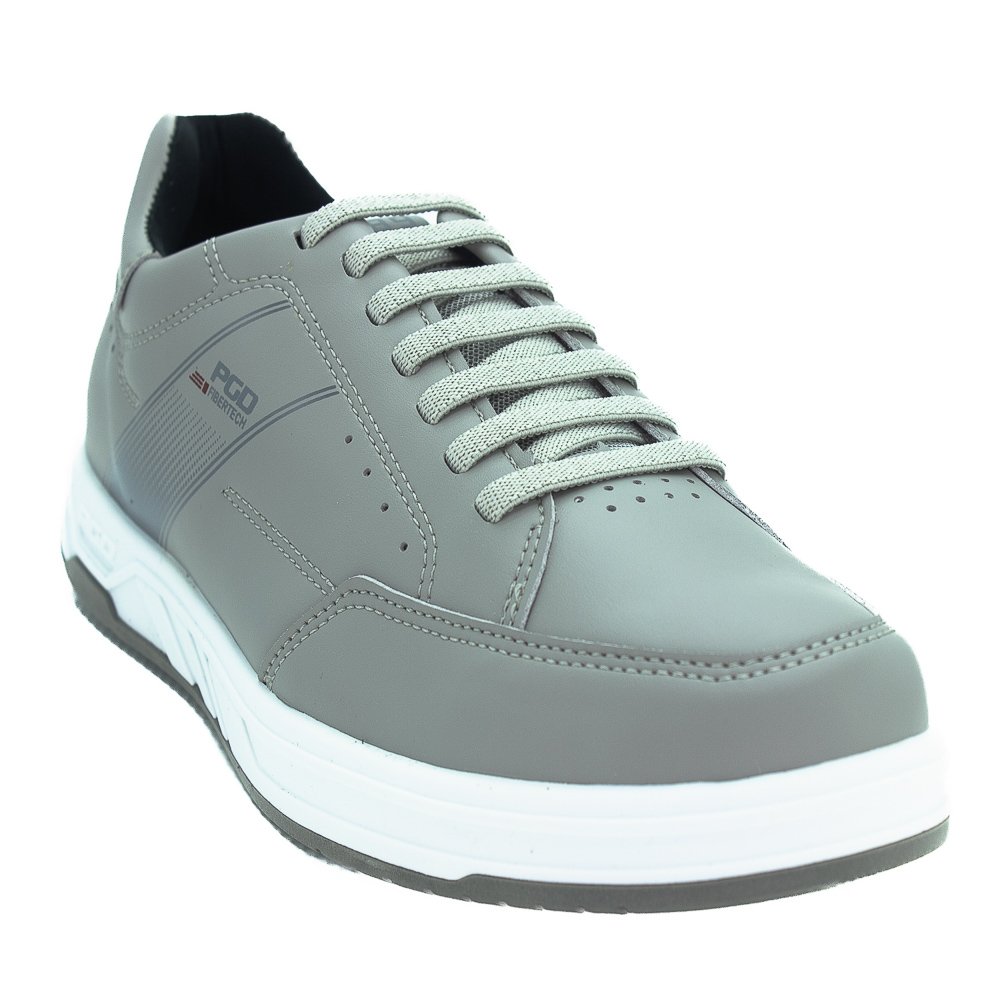 Este tênis masculino em tom cinza é a escolha perfeita para quem busca um visual moderno, versátil e funcional. Com design clean e contemporâneo, ele traz detalhes em relevo e uma faixa estilizada na lateral com a inscrição "PGD Fibertech", que adiciona um toque esportivo ao calçado. Confeccionado em material sintético de alta durabilidade, possui cadarço em tom coordenado e solado branco com base antiderrapante, garantindo segurança e conforto em cada passo. Ideal para uso diário, combina perfeitamente com jeans, bermudas e até mesmo looks casuais mais alinhados.