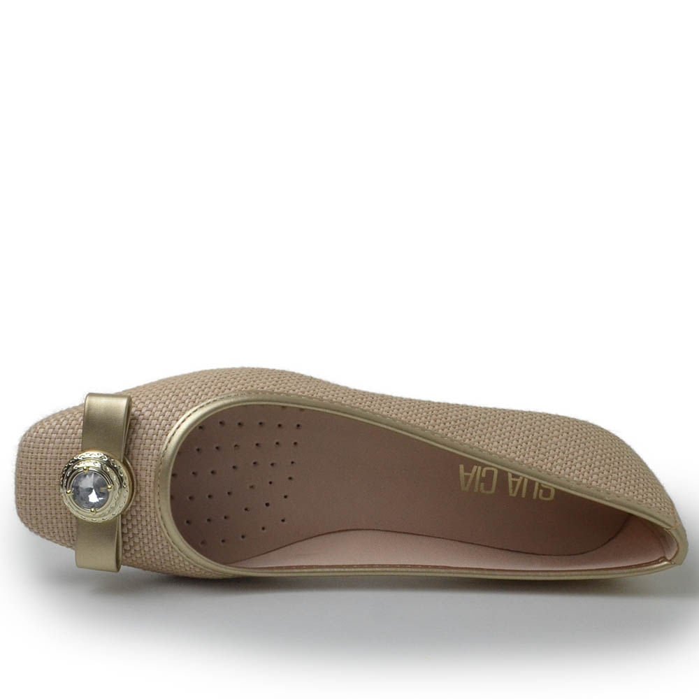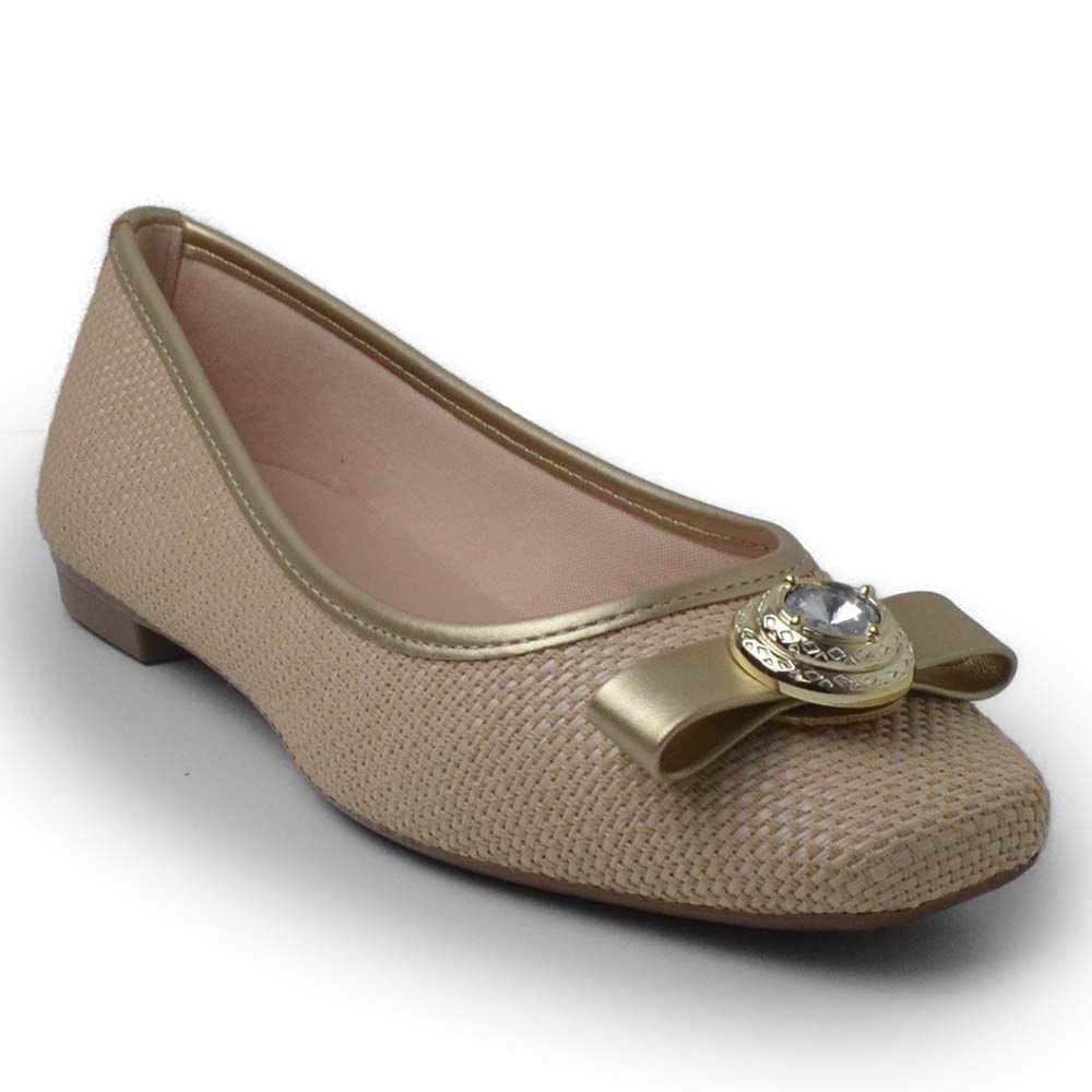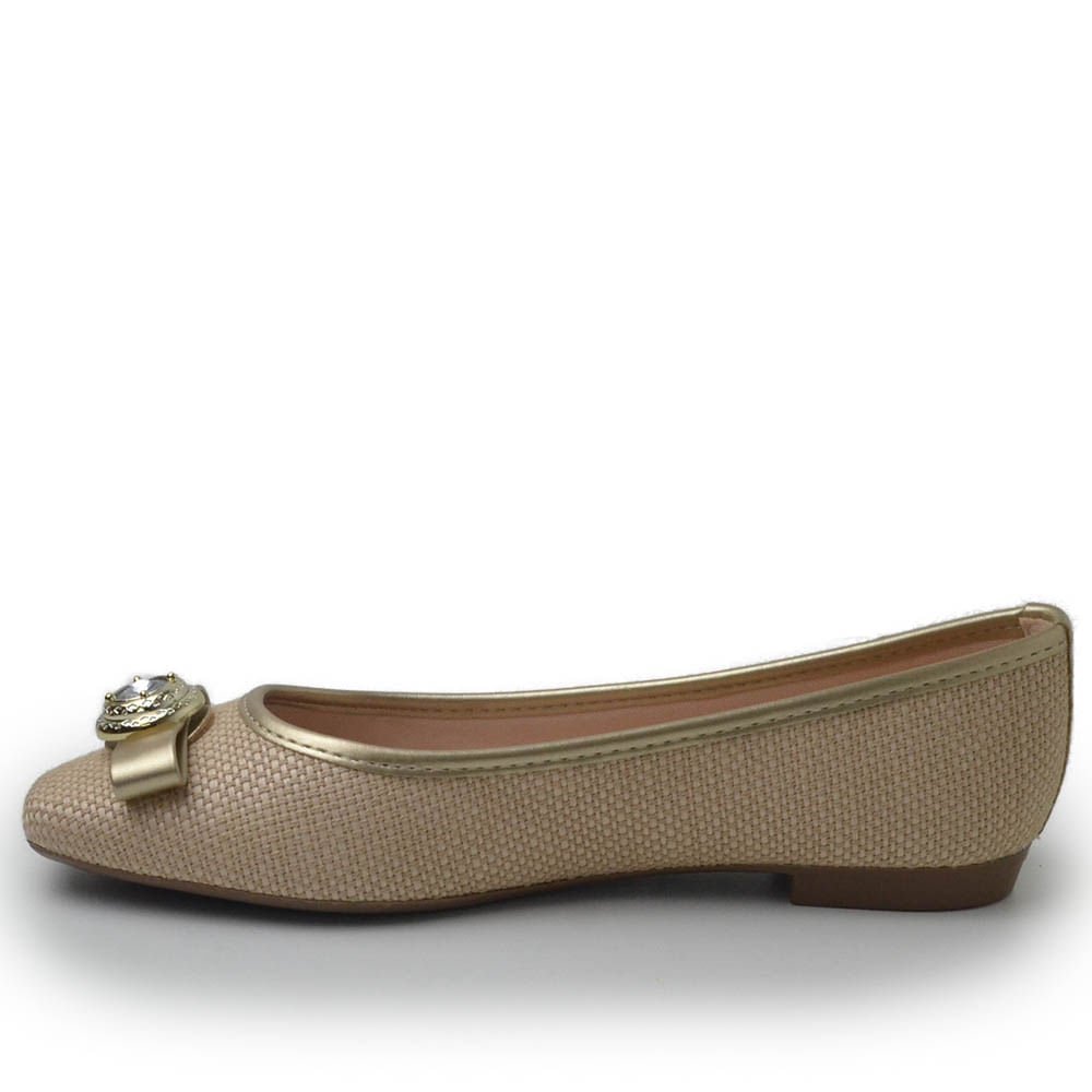 A Sapatilha Sua Cia é a escolha ideal para quem busca um toque de sofisticação e elegância em seu visual. Com um acabamento dourado brilhante, esta sapatilha é perfeita para adicionar um toque de glamour a qualquer look. O detalhe na frente do calçado, oferece um charme adicional e realça a estética da sapatilha. O design é cuidadosamente elaborado para garantir conforto durante o uso, combinando um solado flexível com uma palmilha macia. Versátil, a sapatilha pode ser usada tanto em ocasiões especiais quanto no dia a dia, proporcionando um visual elegante e moderno sem abrir mão do conforto.