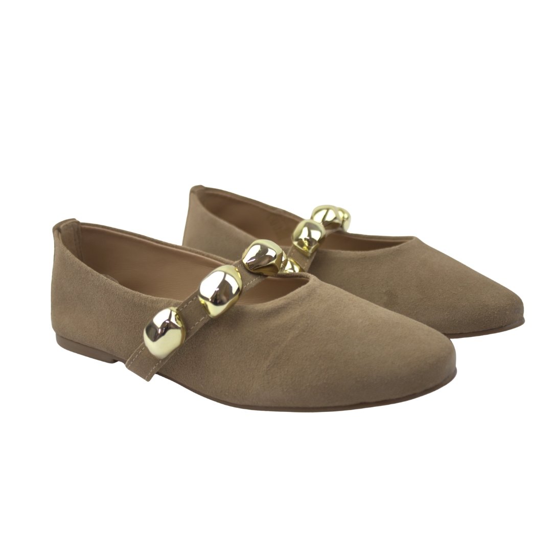 Ref: Descubra a elegância e conforto da Sapatilha Bottero Botnova Kairi Ny, ideal para mulheres que buscam estilo sofisticado no dia a dia. Confeccionada em material que imita camurça, combina maciez e durabilidade, garantindo sensação agradável aos pés. Seu design moderno com bico fino e detalhe em metais dourados oferece um toque de exclusividade e requinte, perfeito para diversos ambientes.