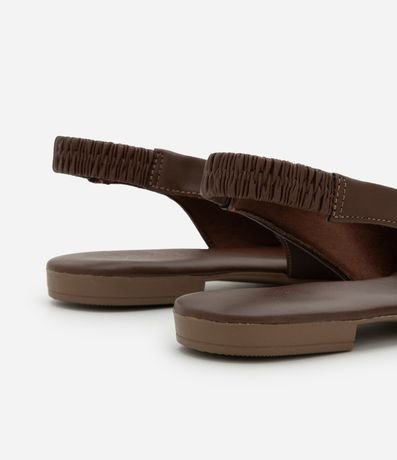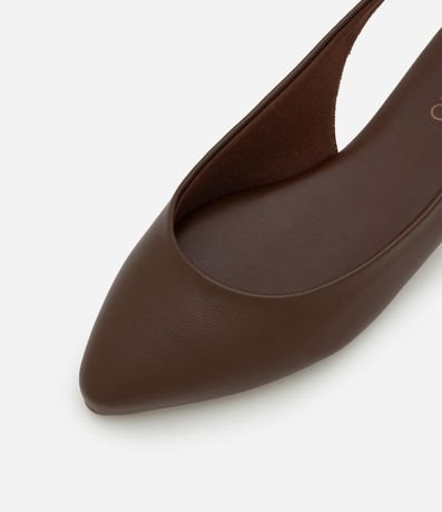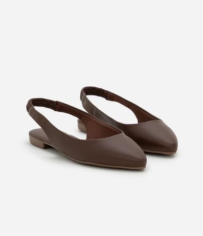 Ref: Sapatilha feminina confeccionada em material sintético, peça com bico redondo, tira assimétrica com elástico no tornozelo e salto rasteiro.