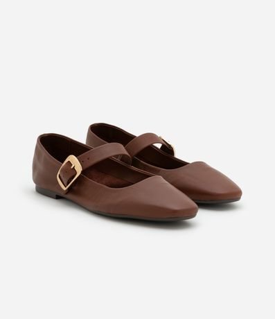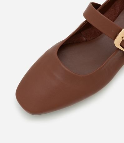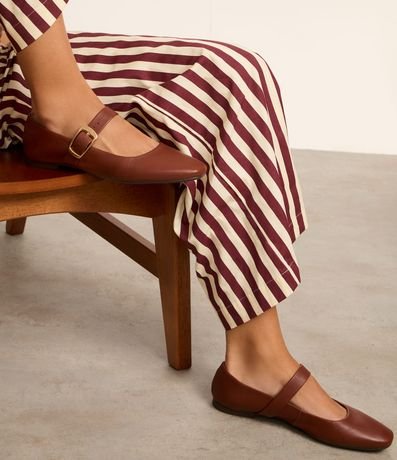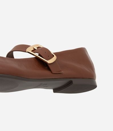 Ref: Sapatilha feminina confeccionada em couro com bico bailarina, com tira média com fivela de metal.