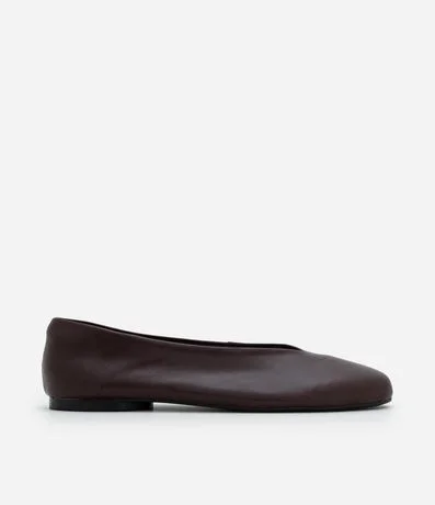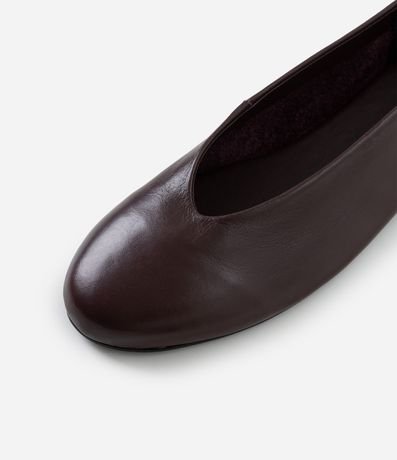 Ref: Sapatilha feminina em couro, com bico arredondado, recorte profundo no peito do pé e sola baixa, oferecendo visual clean.