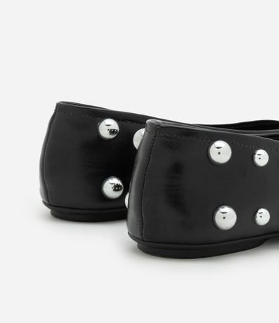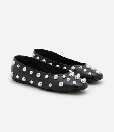 Sapatilha feminina, confeccionada em PU, com esferas grandes aplicadas e bico redondo. A peça possui calce sem fechamento.