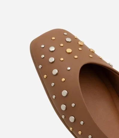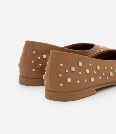 Ref: Sapatilha feminina rasteira, confeccionada em material sintético, com bico quadrado e decote redondo. Sem estampa, possui detalhe em aplicação de tachinhas com mix de tamanhos e banhos.