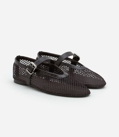 Sapatilha em PU com Textura Telinha e Bico Fino