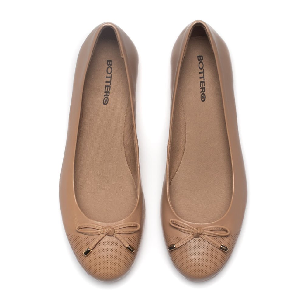 Nome do produto: Sapatilha Feminina Bottero Couro Laço Microfuros Bege
