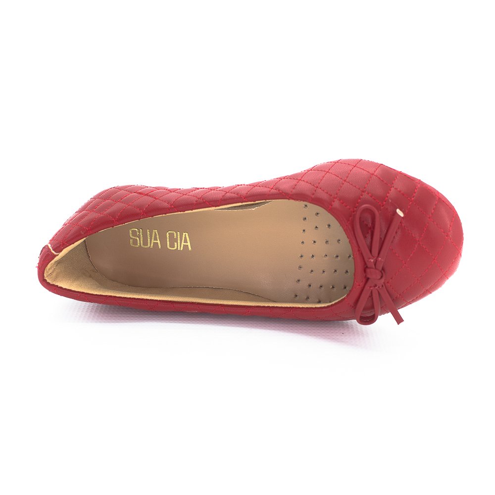 Clássicas, as sapatilhas não saem de moda. Nessa versão, a peça se destaca através do bico redondo e laços, forte nessa temporada. O vermelho nao temerro é um complemento certeiro para as produções de dia a dia.