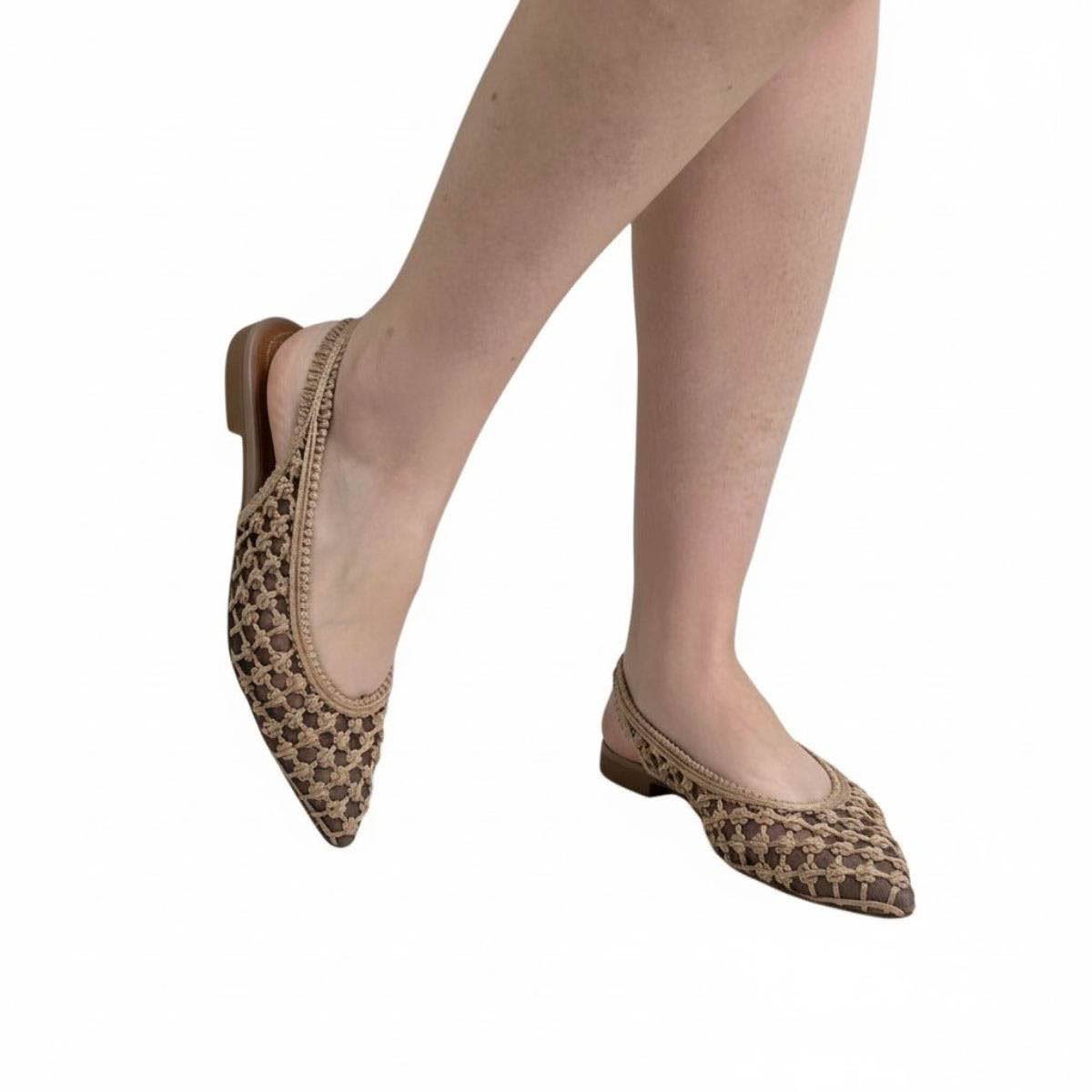 Sapatilha Valentina Feminina 373318 Bege. A Slingback Tramada Valentina Flats é a escolha perfeita para quem procura estilo e conforto combinados em um único calçado, ideal para ser usado o dia todo.
