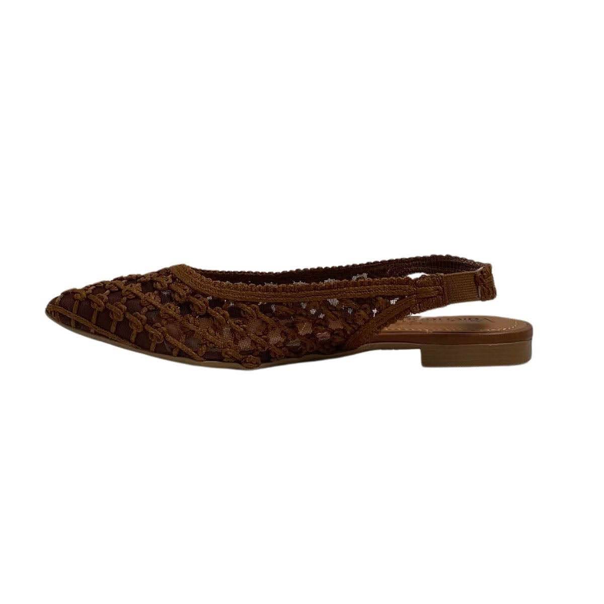 Sapatilha Valentina Feminina 373318 Marrom Escuro. A Slingback Tramada Valentina Flats é a escolha perfeita para quem procura estilo e conforto combinados em um único calçado, ideal para ser usado o dia todo.
