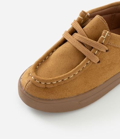 Ref: Sapato dockside infantil confeccionado em material com textura de camurça fake, trazendo toque macio e visual moderno. Possui amarração frontal, cabedal estruturado e solado em PVC que oferece firmeza na pisada. Um modelo versátil e confortável para compor looks casuais do dia a dia.