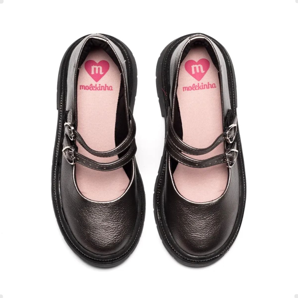 Indicado: Dia a dia Tipo de sapato: Boneca Material: Sintético Material interno: Têxtil Palmilha: Espuma Solado: PVC Fechamento: Fivela Altura do salto: 3cm Diferenciais: fivelas em formato de coração O sapato infantil é um calçado projetado especialmente para crianças, oferecendo conforto, proteção e estilo aos pequenos. Com um design adaptado às necessidades das crianças em fase de crescimento, os sapatos infantis são essenciais para garantir o bem-estar dos pequenos durante suas atividades diárias e momentos de diversão. Os sapatos infantis são extremamente versáteis e podem ser usados em diversas ocasiões, desde passeios no parque, idas à escola, festas infantis até momentos de lazer em casa. Eles combinam bem com shorts, saias, vestidos, bermudas e outras peças do guarda-roupa infantil, proporcionando um visual charmoso e confortável.