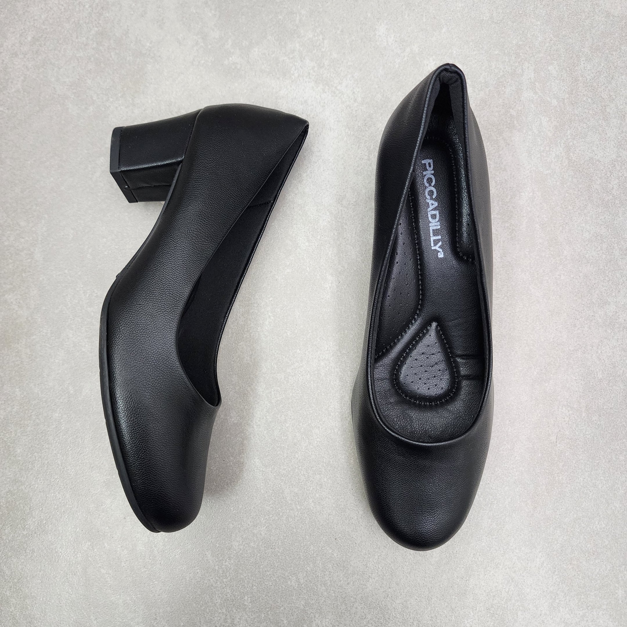 O sapato PICCADILLY traz elegância e versatilidade, permitindo combinar diversos looks diários desde o trabalho até eventos mais sociais. O modelo é produzido em material sintético de alta qualidade, possuindo bico arredondado. Internamente ele é forrado em tecido e palmilha ortopédica acolchoada que oferece maior conforto aos pés na pisada. Conta com salto médio quadrado de 5,0 cm de altura e solado em borracha, garantindo mais estabilidade e segurança ao caminhar.